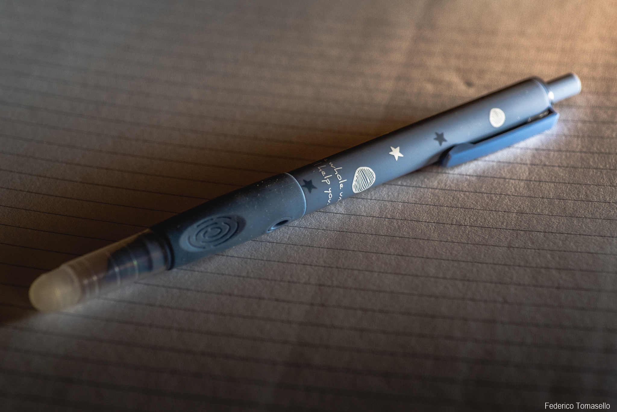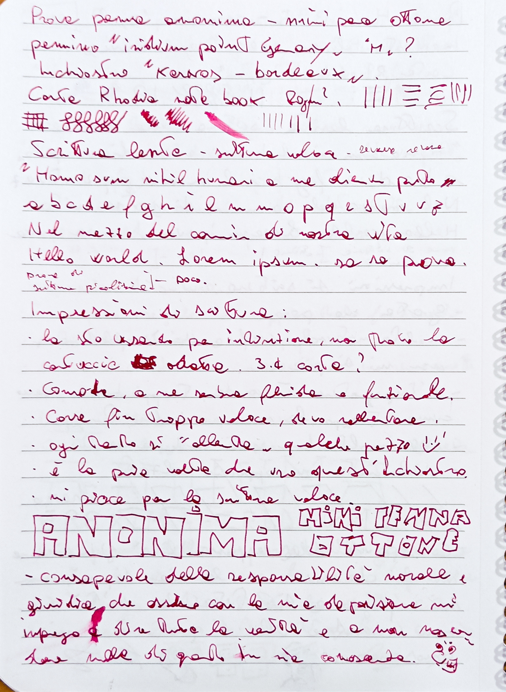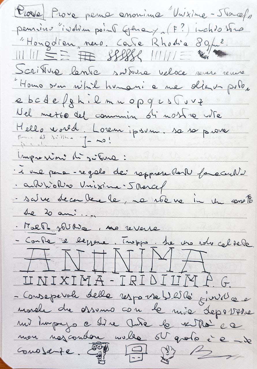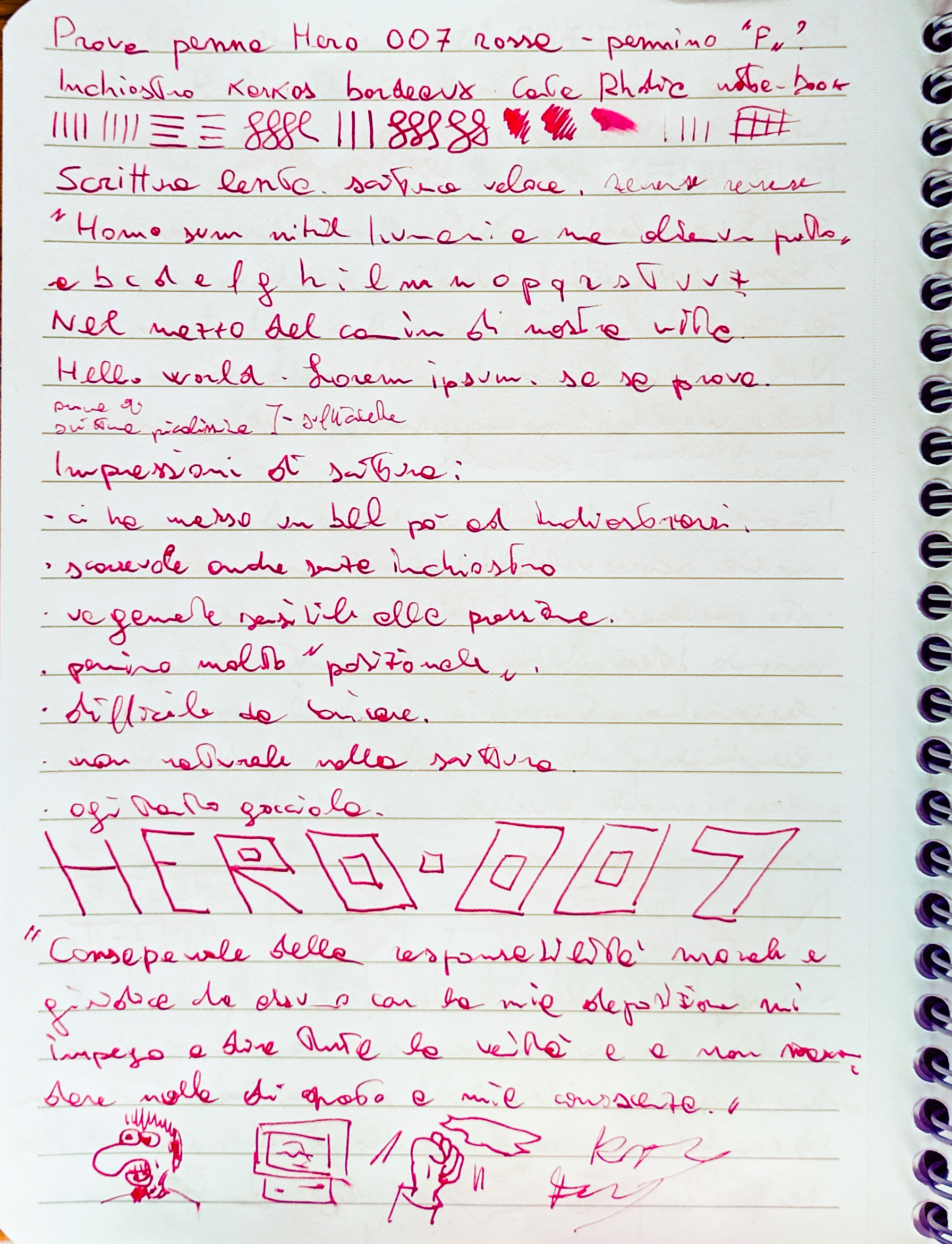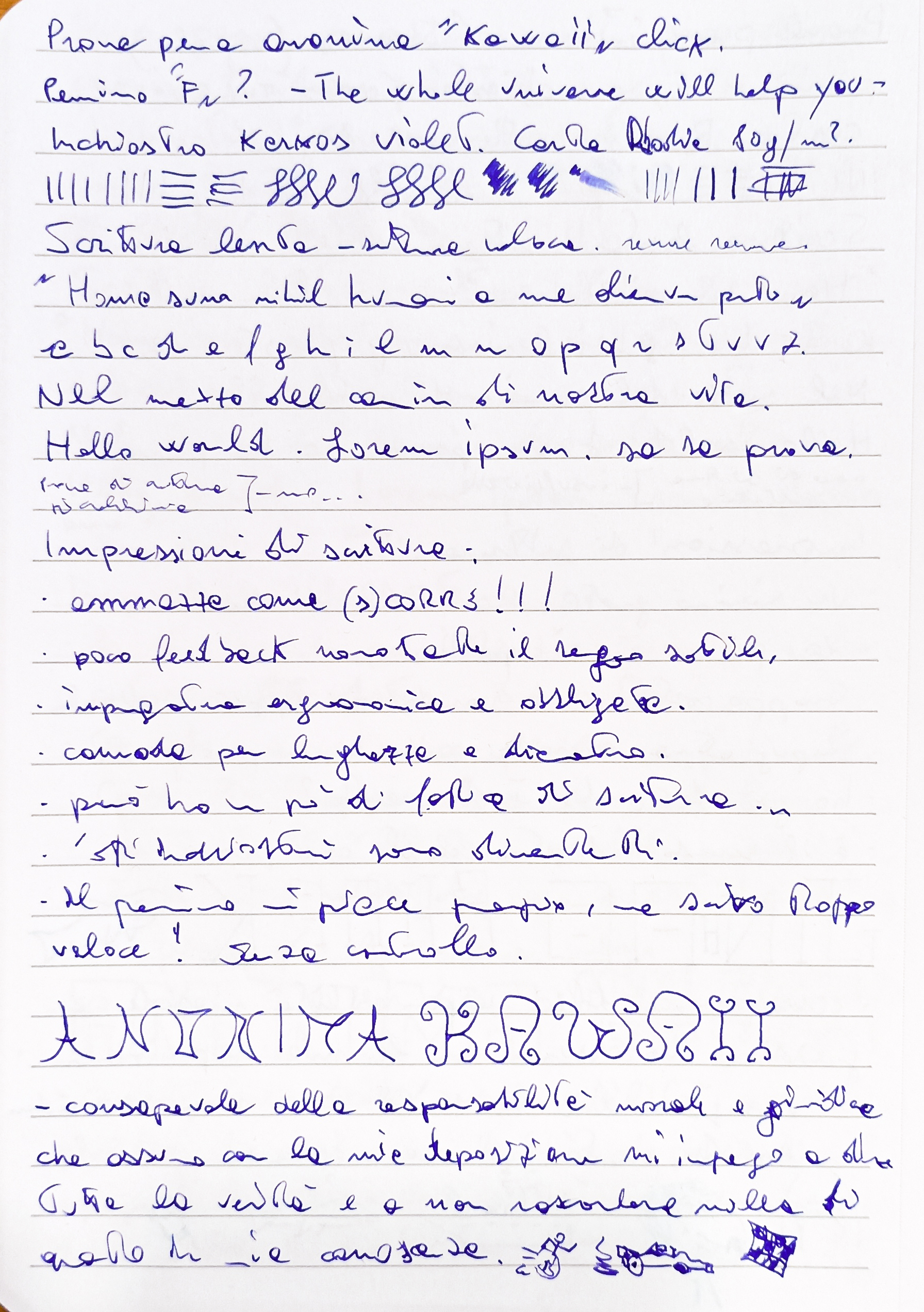 Al di là di tutto, ha un pennino estremamente liscio e per me praticamente incontrollabile, con un crollo della comprensibilità dei segnacci che lascio sul foglio. Peccato perché il tratto invece mi piaceva molto ed anche la sensazione di passaggio sul foglio.