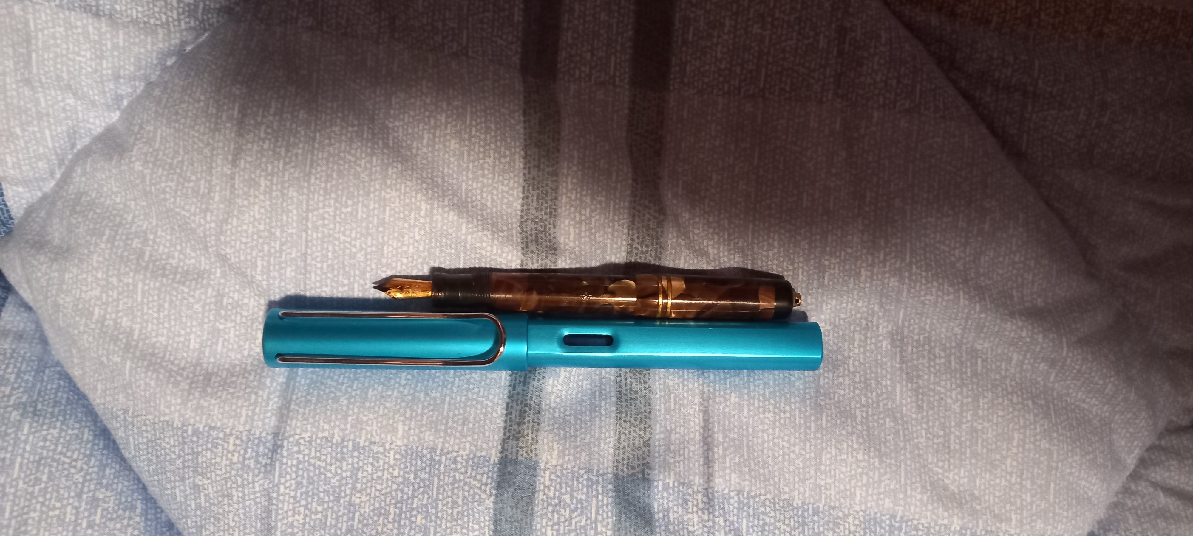 Vi lascio la mia piccolina, confrontata con una Lamy. Presa qualche anno fa in un pen show a Napoli, ha davvero bisogno di un fiocchetto per renderla ancora più bella e personalizzata.