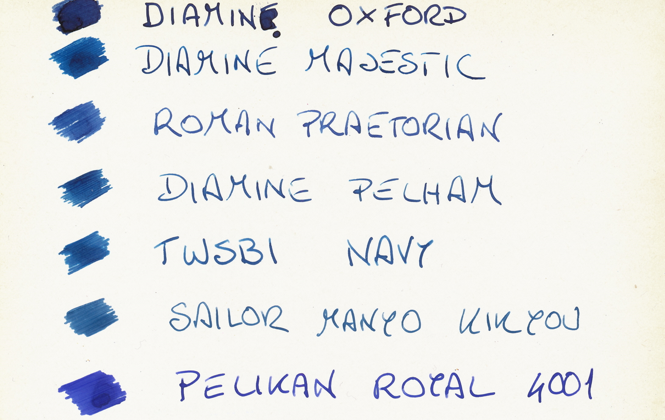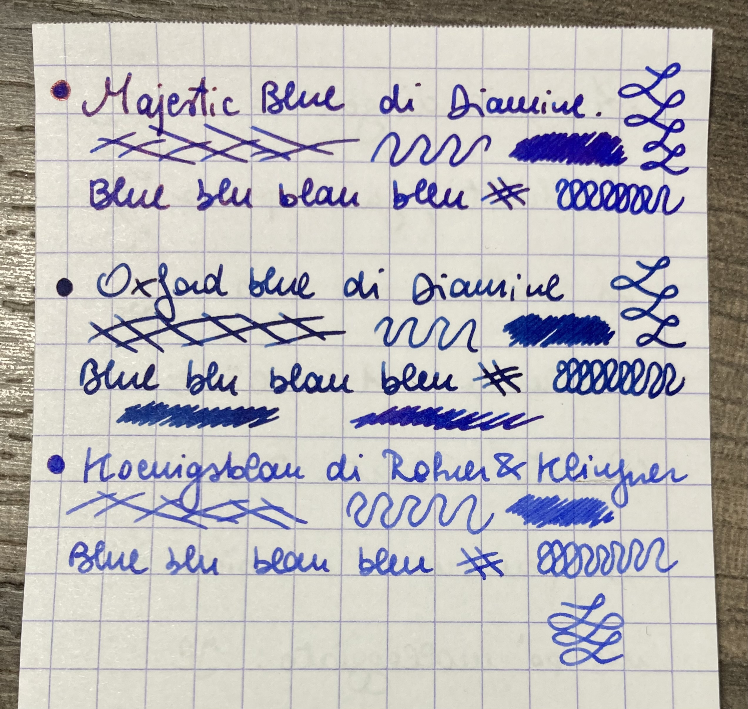 Eccomi, dunque ho usato penne molto molto simili come comportamento per Oxford e Majestic, mentre il royal blue è in una penna dal tratto lievemente più fine.