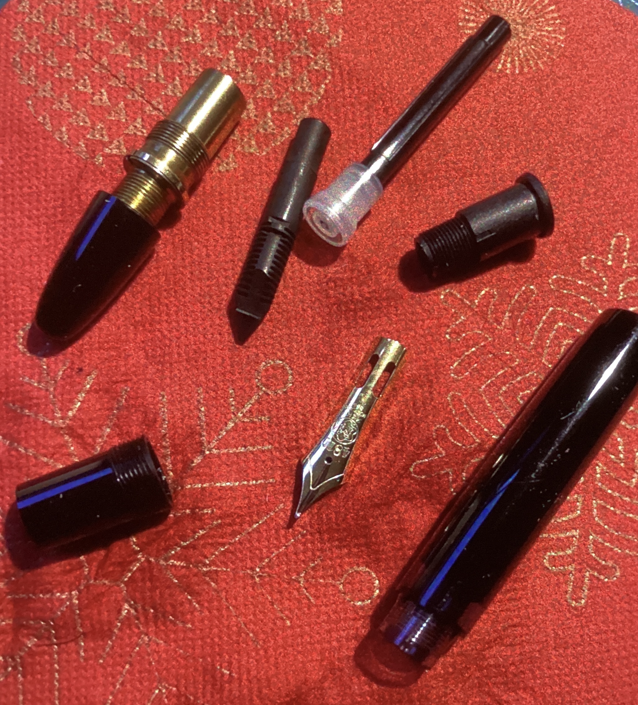 Ha ha ha, no era assolutamente perfetta senza un graffio, ma il vecchio proprietario dopo averla ricevuta la provò e la mise via senza più usarla… ma con un poco d’inchiostro dentro che ha inevitabilmente tappato il serbatoio.