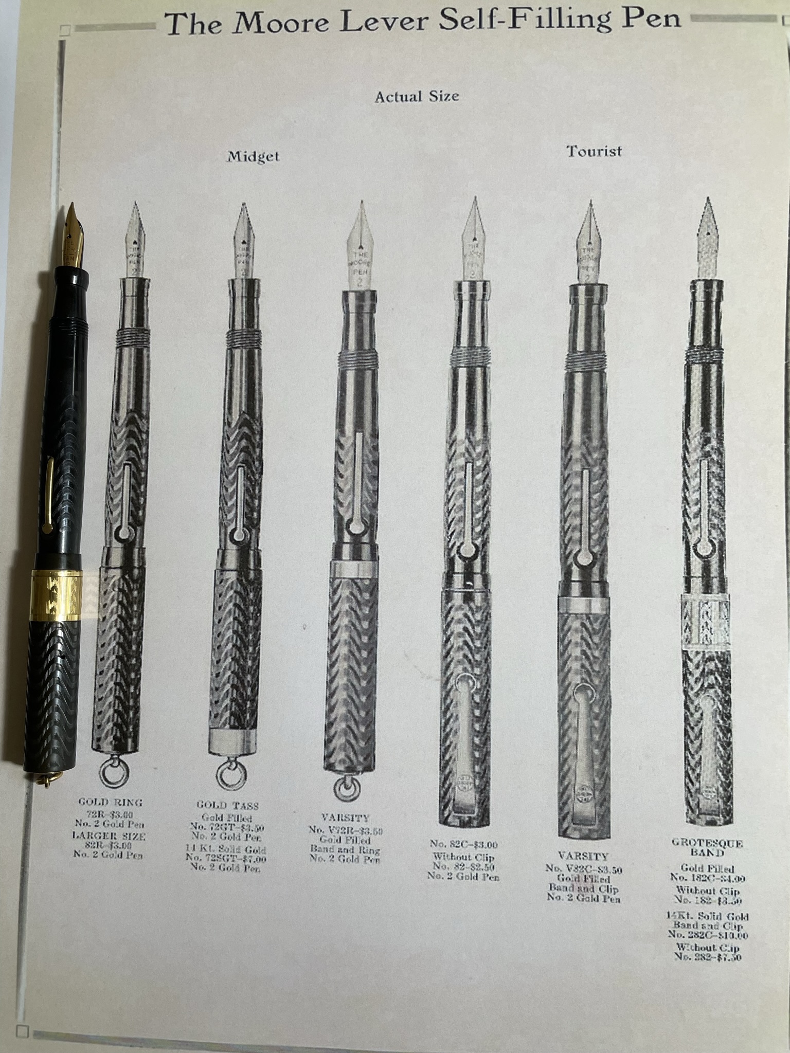 Il pennino è un classico Moore n 2, col cuoricino, senza nessuna indicazione precisa.