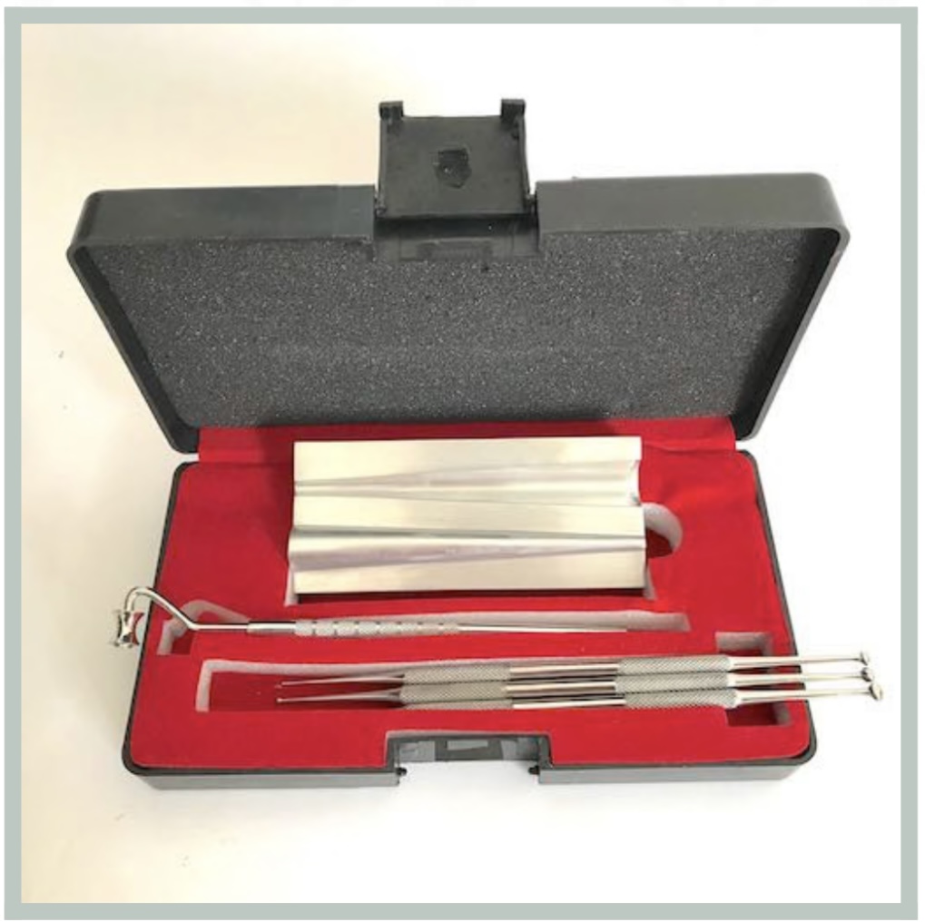 interessante, immagino che quelle strane basi che si vedono sono un supporto concavo/convesso nel quale/sul quale adagiare il pennino dorso in giù/e in su in corrispondenza del suo raggio di curvatura, e in modo da lavorarlo dalla parte concava e dalla parte convessa e raddrizzare le parti che hanno perso la giusta forma.