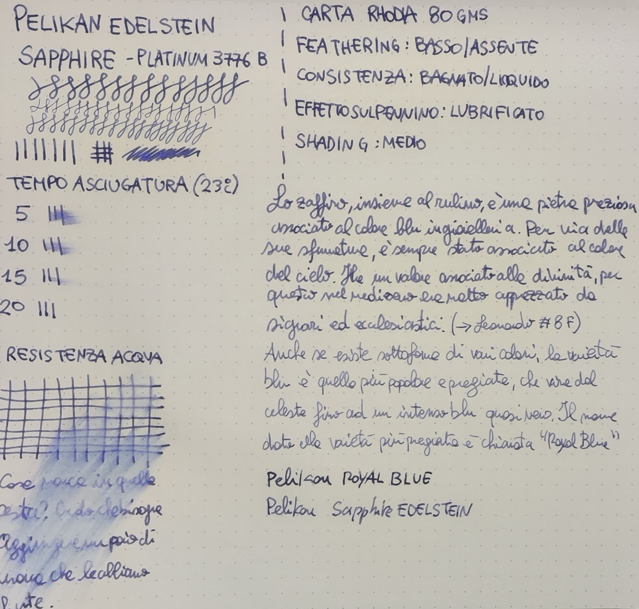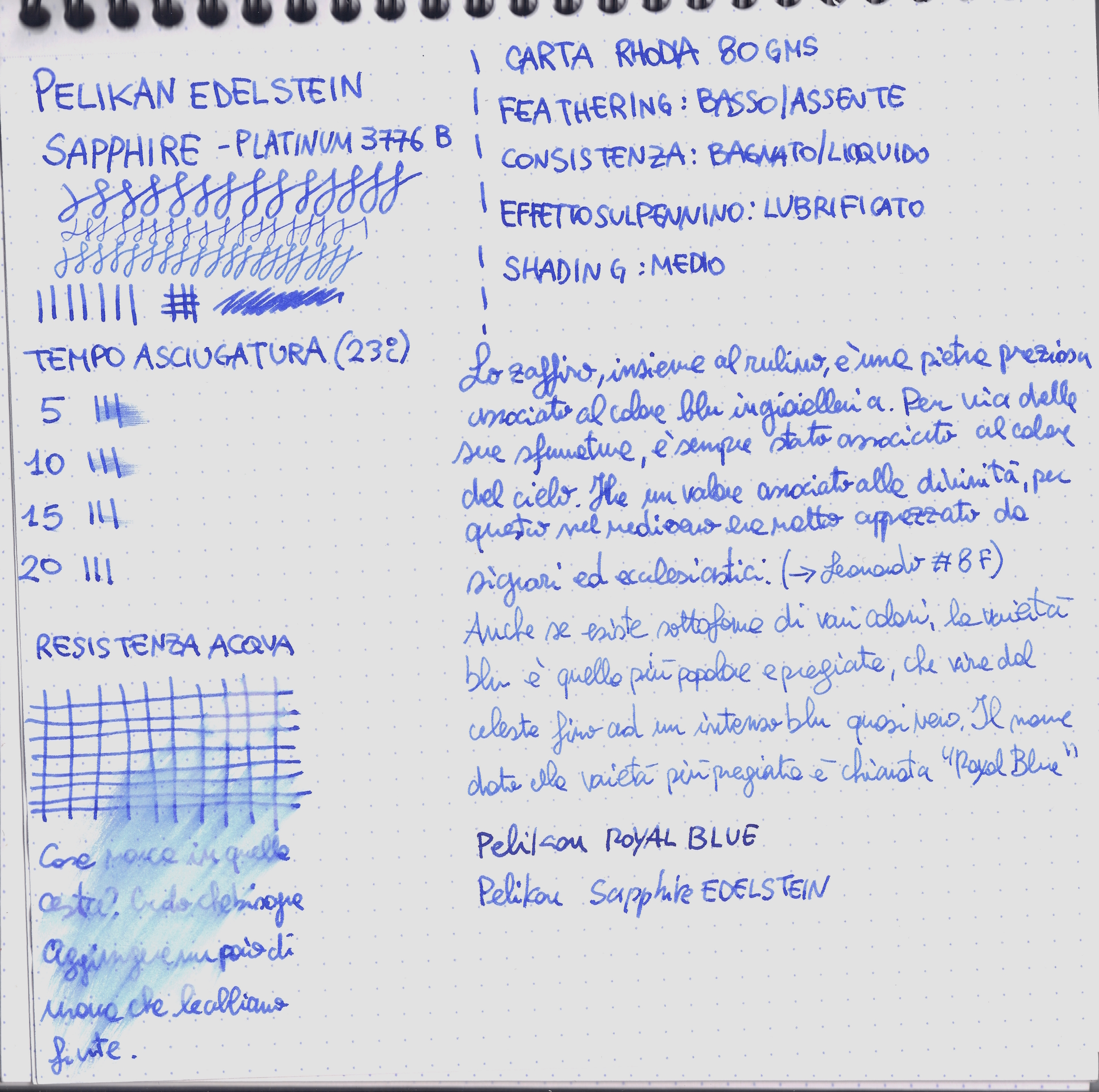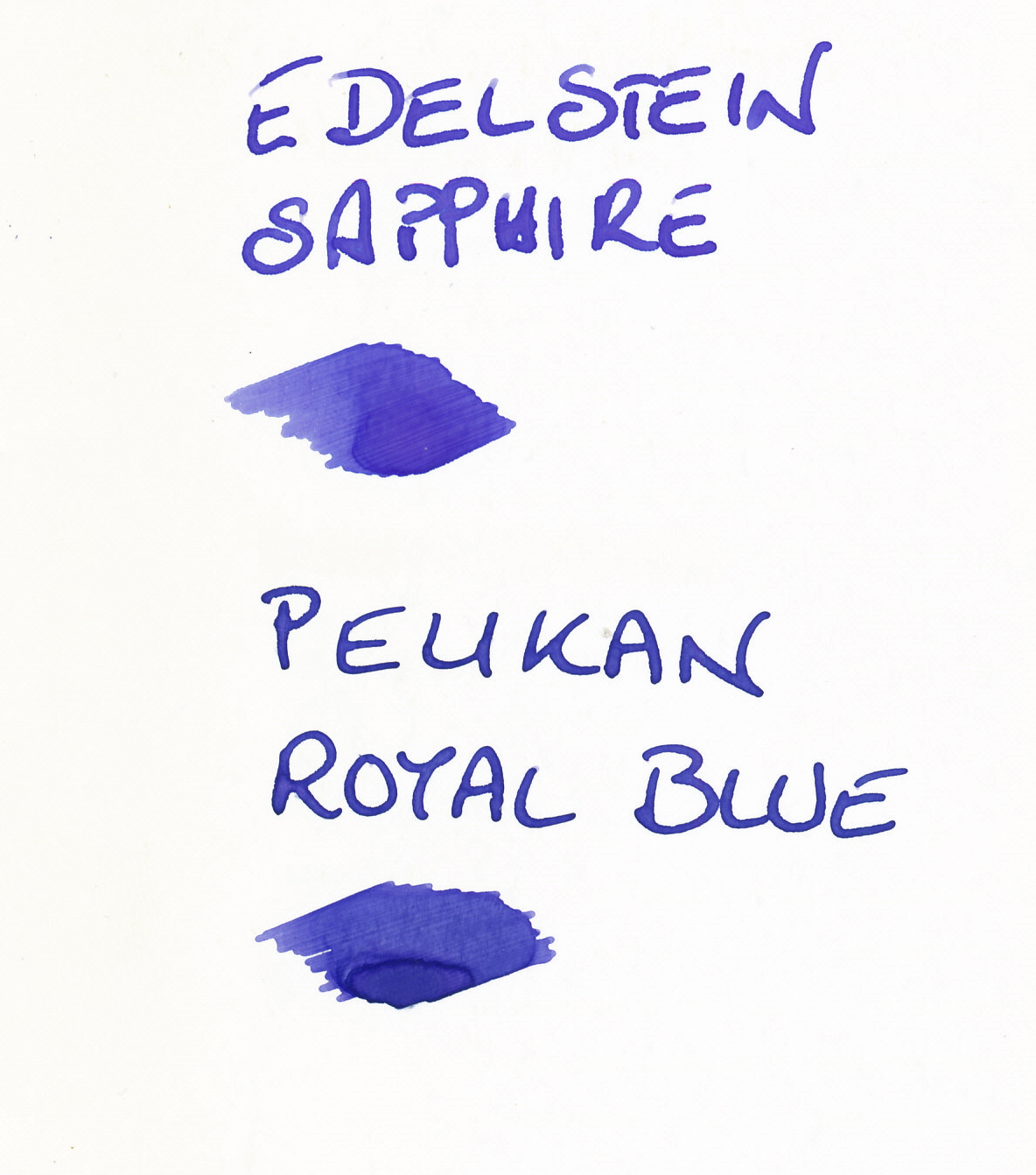 (il royal blue viene da una delle boccette moderne, quelle con la scatolina grigia. Ne ho alcune boccette in calamai più vecchi nei quali il colore è leggermente diverso).