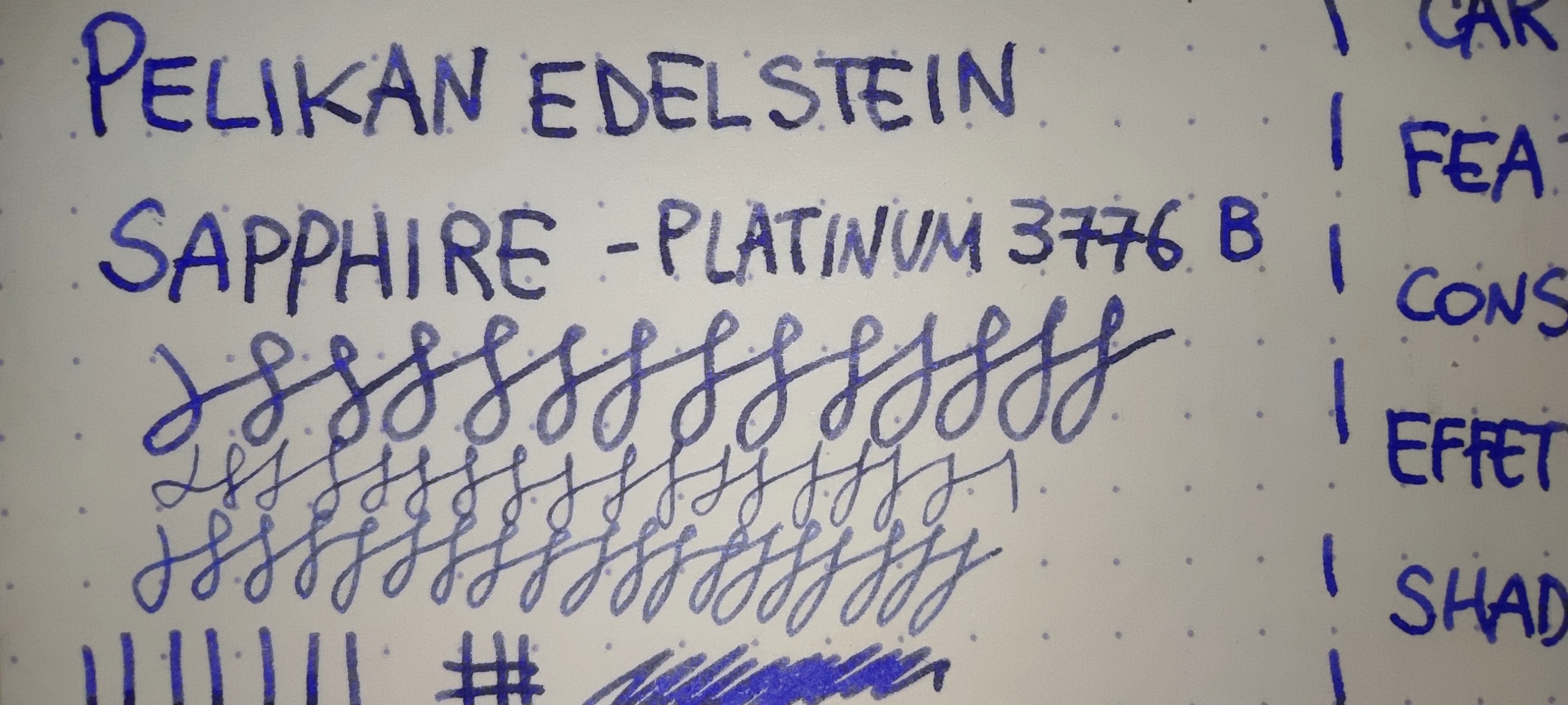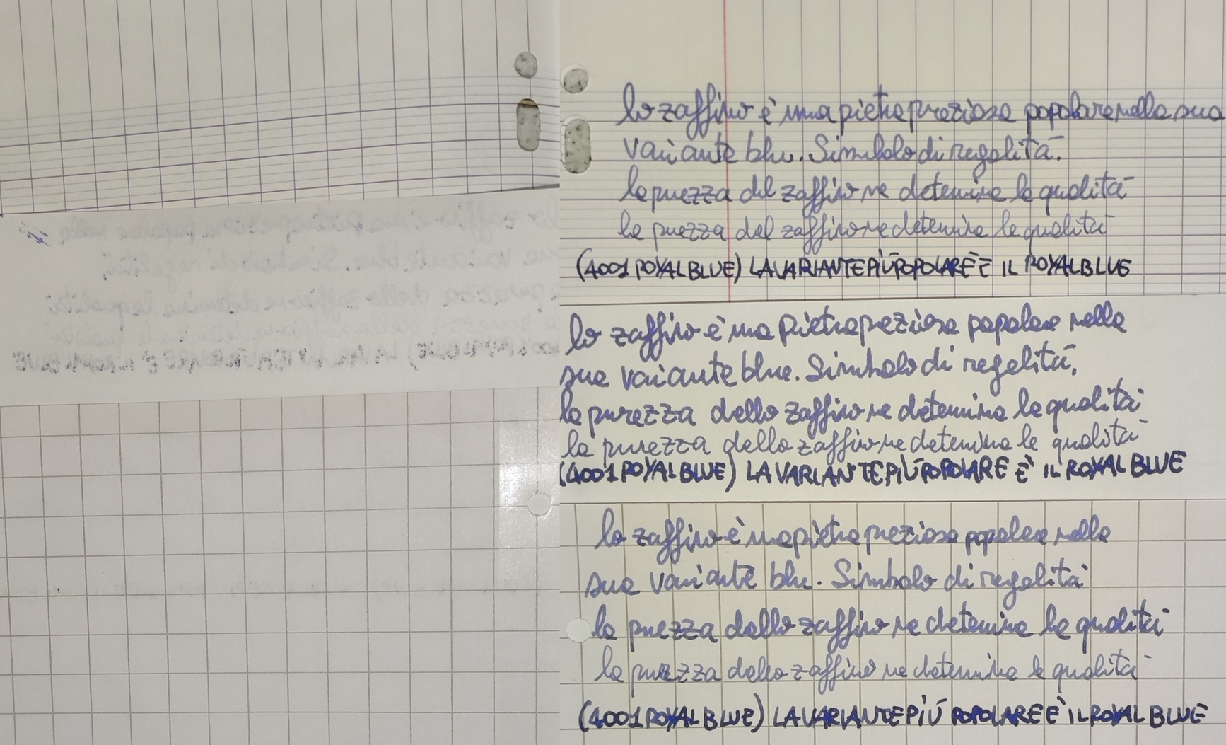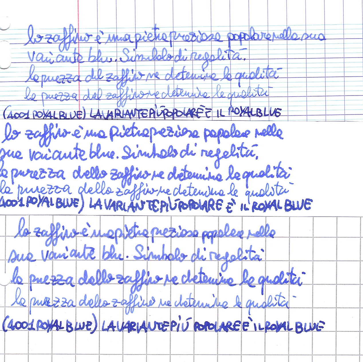 (il royal blue viene da una delle boccette moderne, quelle con la scatolina grigia. Ne ho alcune boccette in calamai più vecchi nei quali il colore è leggermente diverso).