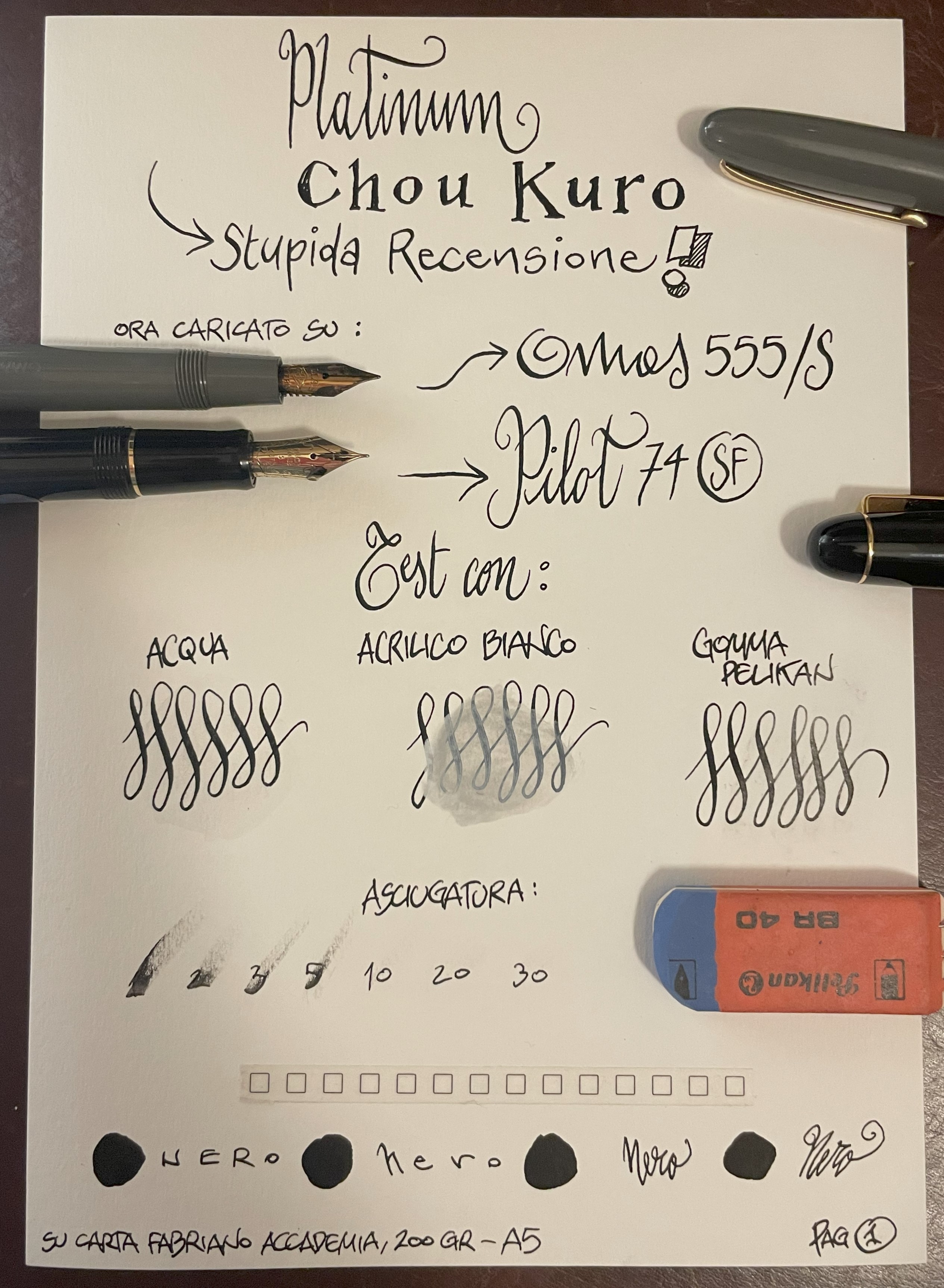 Di seguito degli stupidi test comparativi, ma che servono a una mazza, perchè si dovrebbero fare con le identiche penne: