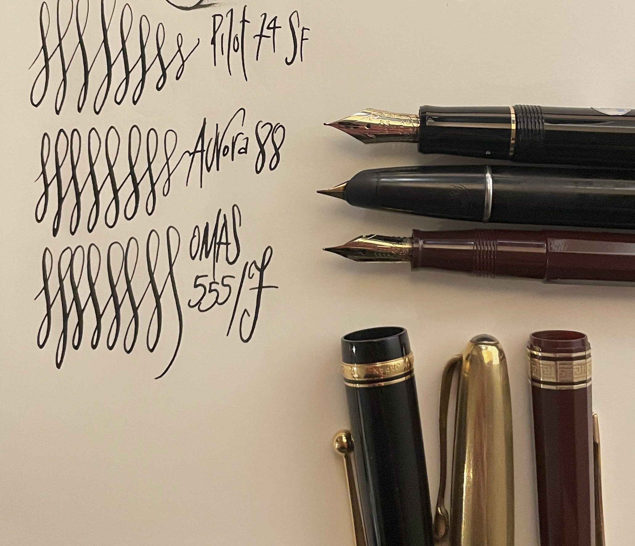 La 74 con il chou kuro, la 88 con LO tsuwairo, la omas 555 con il carbon.