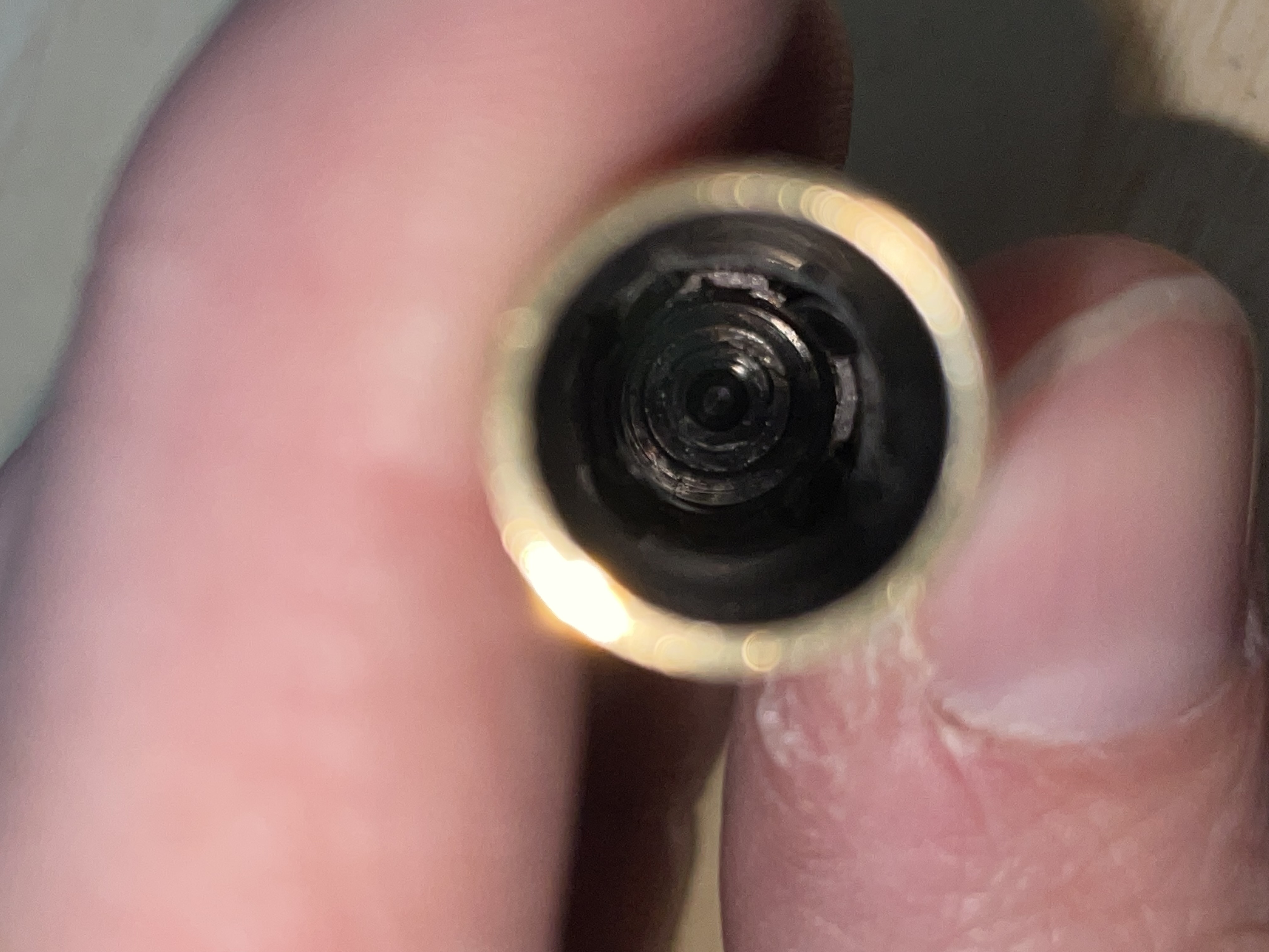 Per tutti quelli che dicevano che potrebbe essere incastrat… avevate ragione. Estratta ma mi aspettavo qualcosa di doverso, con filetto visto che la sezione ha una parte filettat scoperta… questo quello che é saltato fuori dal tappo: allego anche un tentativo di farvi vedere l’interno una volta estratto l’intruso