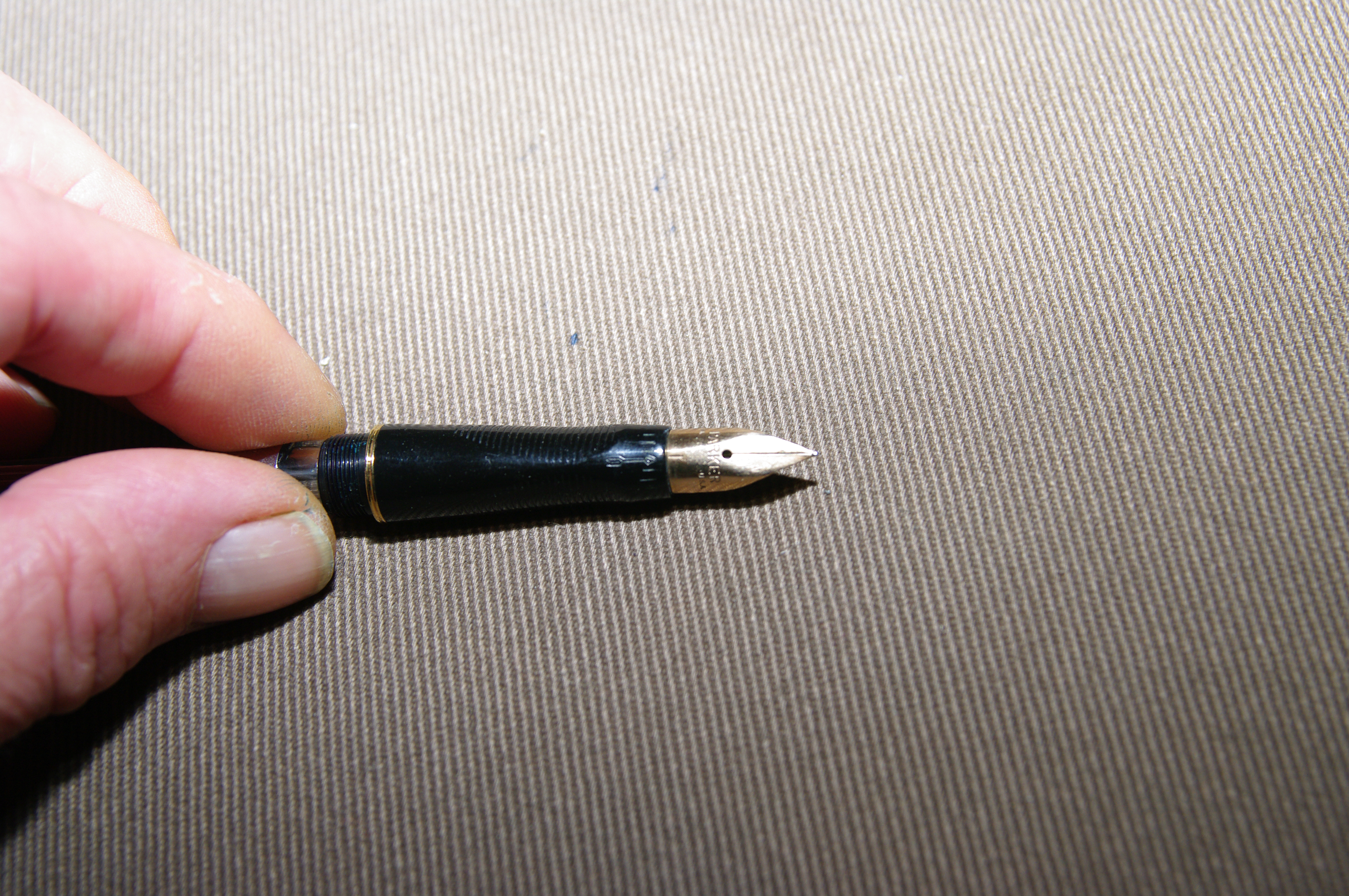 La penna è progettata così, per evitare di sporcarsi le dita.