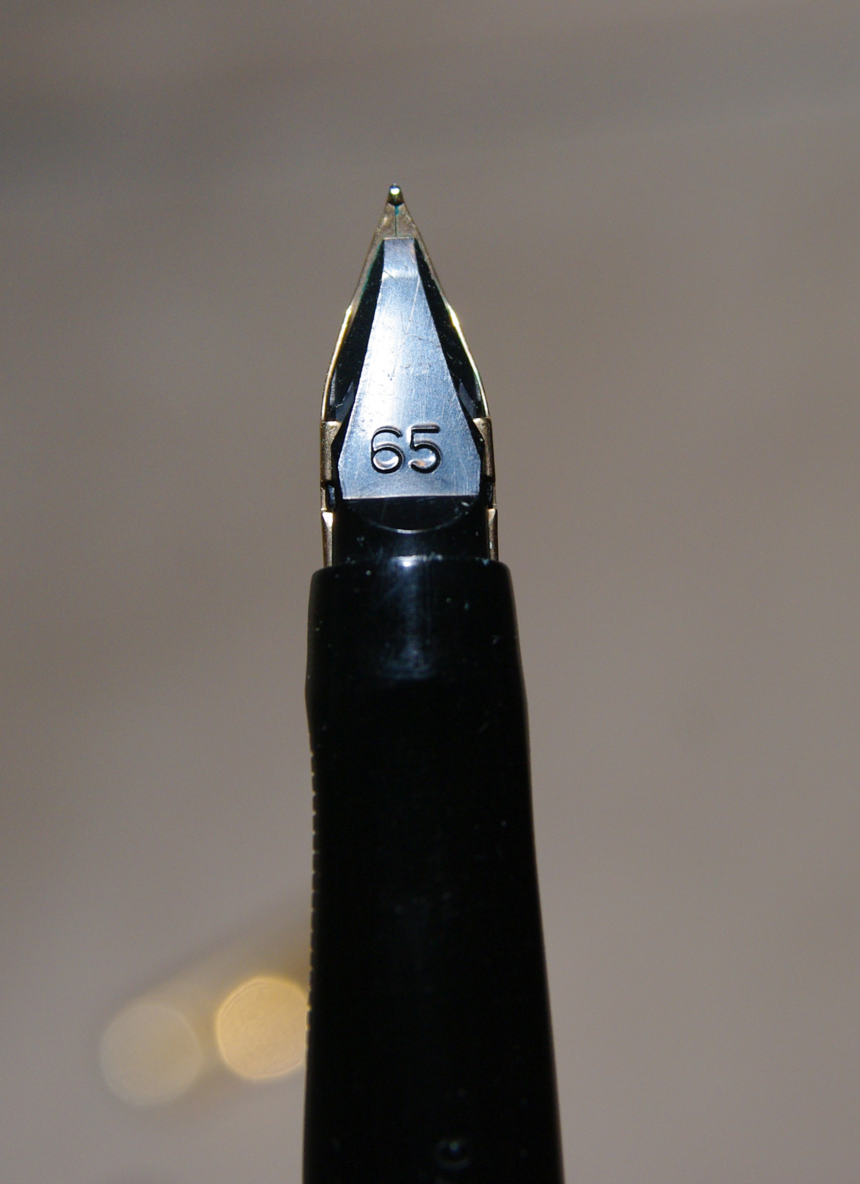 La 65 somiglia, ma ma ha di diverso il terminale del fusto e la sezione con pennino, questa somiglia a quello della 75 ma senza la fascetta .Però sotto all'alimentatore riporta il n° 65 la sezione ha la zigrinatura come le fascette USA ed il pennino ruota.