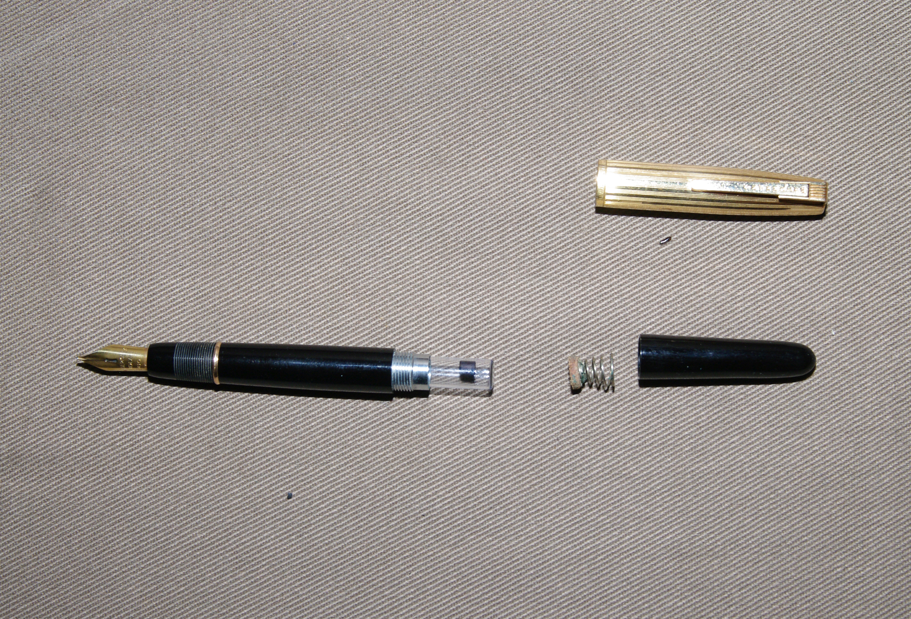 Nell'ultima foto si vede la guarnizione in gomma che seve alla tenuta stagna dell'imboccatura della caruccia di vetro per evitare fuoruscite d'inchiostro