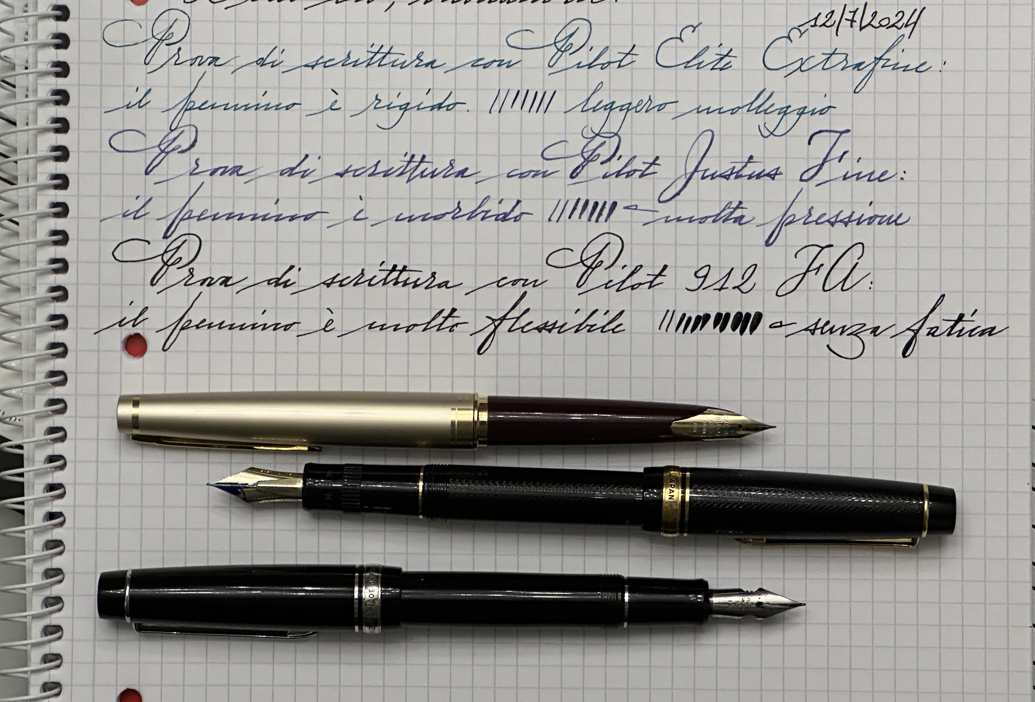 Un pennino rigido di Pilot è da considerarsi quasi sempre un po’ molleggiante, resta molto più rigido di un pennino Soft che, a sua volta, è molto più rigido di un Flessibile (FA in casa Pilot). Uscendo da casa Pilot e guardando a Sailor, i loro 21k sono più molleggiati dei 14k, ma comunque più rigidi dei rigidi Pilot.