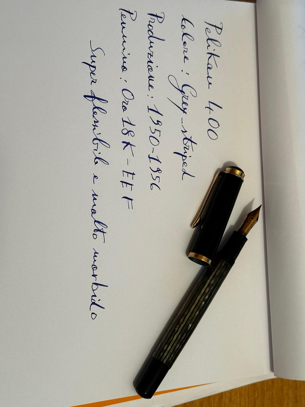 a riprova del fatto che non di rado (ma non sempre) i pennini sulle 400 hanno un grado di flex maggiore delle M400 (pre-1997, ossia old style) e val la pena rischiare a prenderle a volte anche solo per il pennino