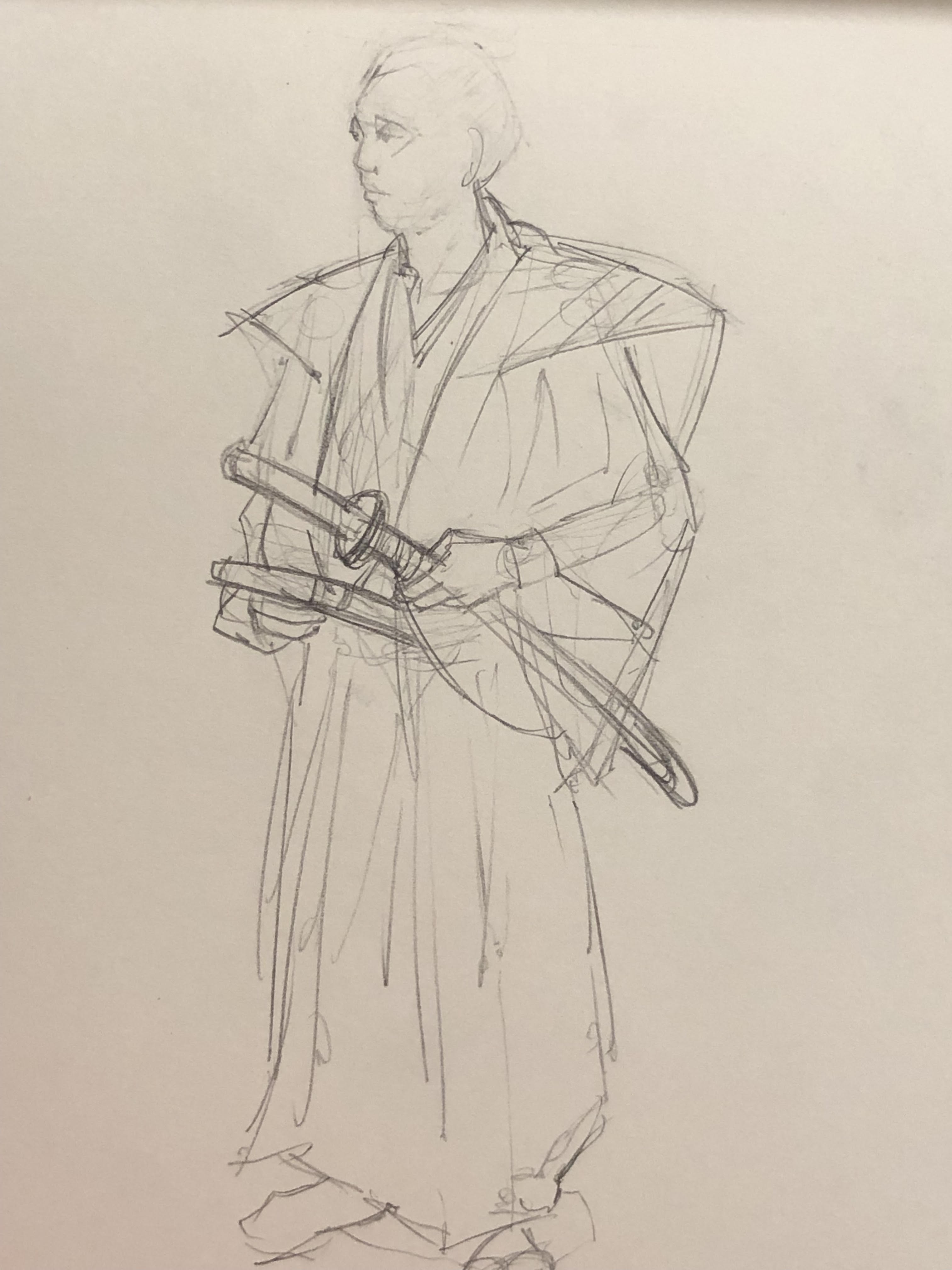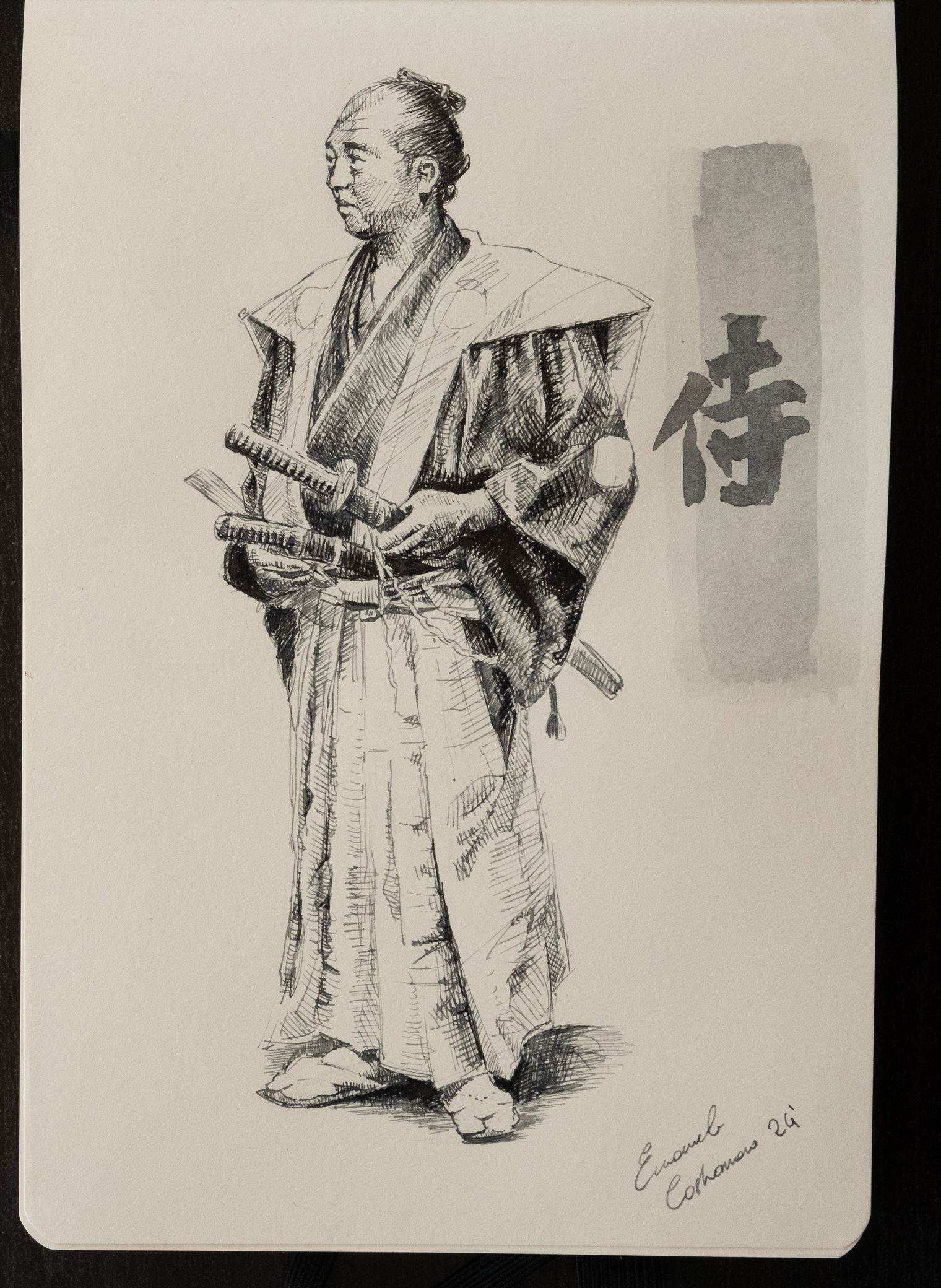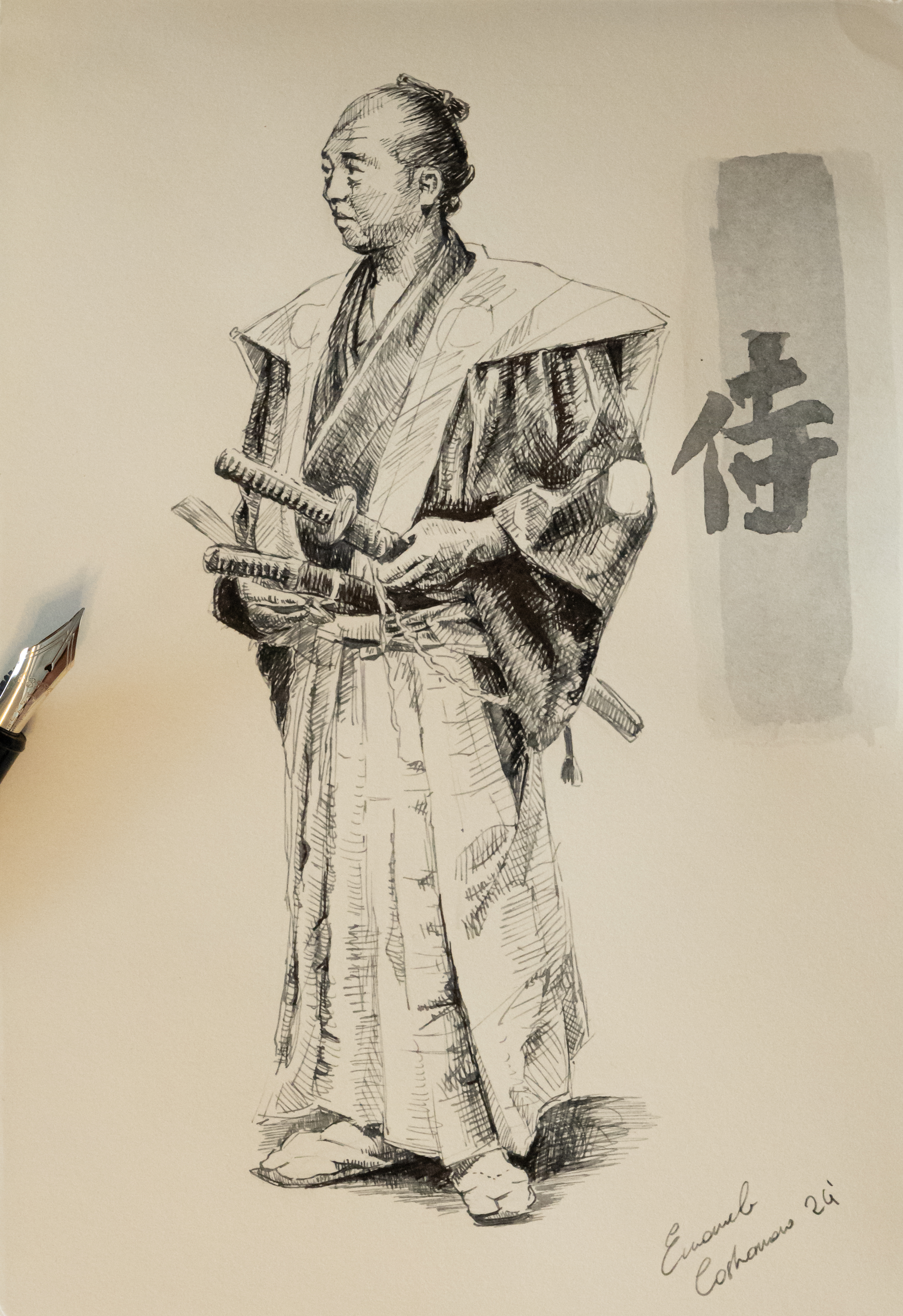 Disegnamo un samurai, stavolta cambiando carta e inchiostro (sto facendo molte prove in questi giorni)