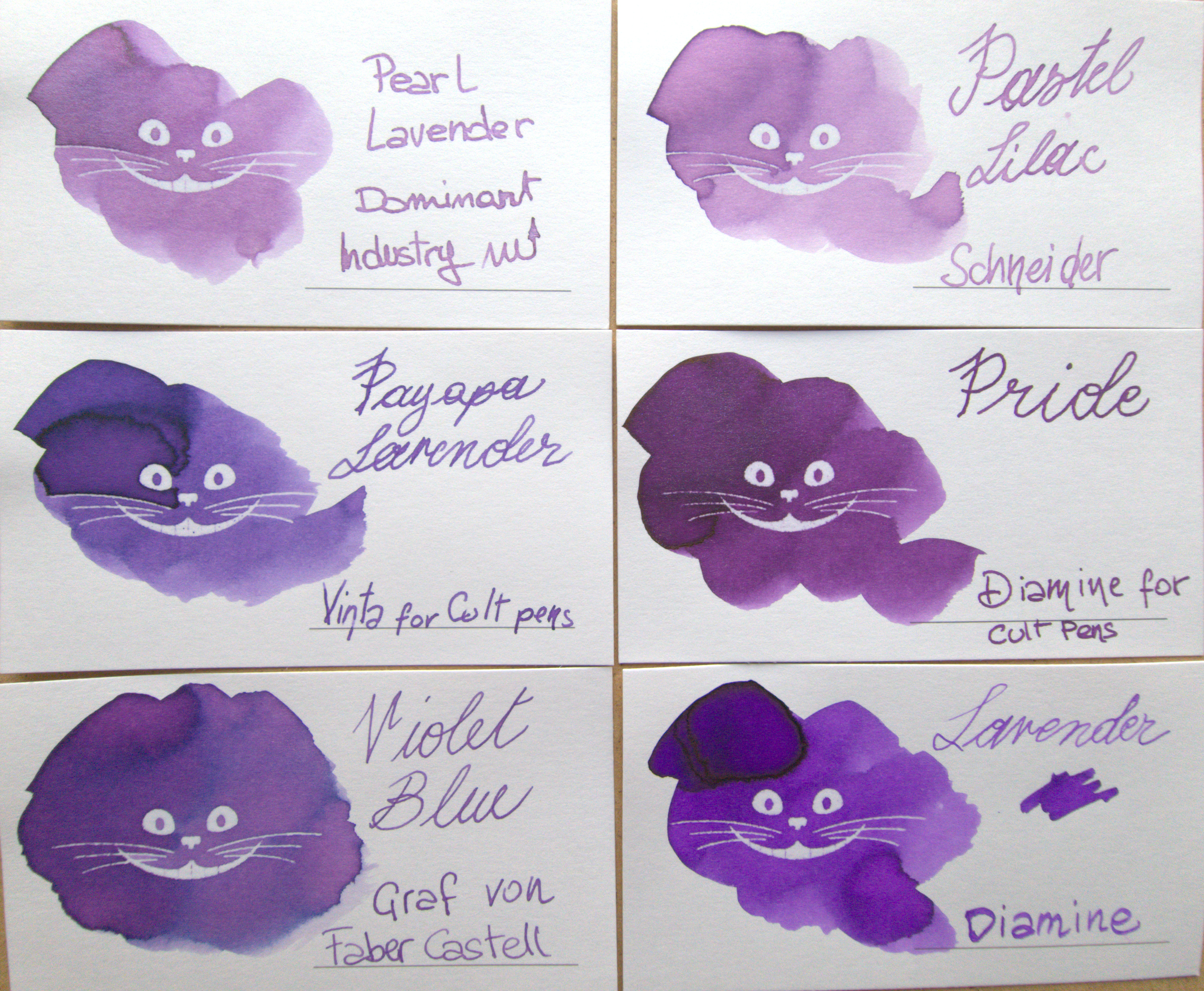 A prima vista, questo inchiostro non ha nulla di speciale. E' un color lavanda, molto accurato, per la mia opinione (Diamine, parlo con te e il tuo "lavanda" fluo partorito da qualche strana pasticca risalente agli anni '80 viewtopic.php?t=33001).