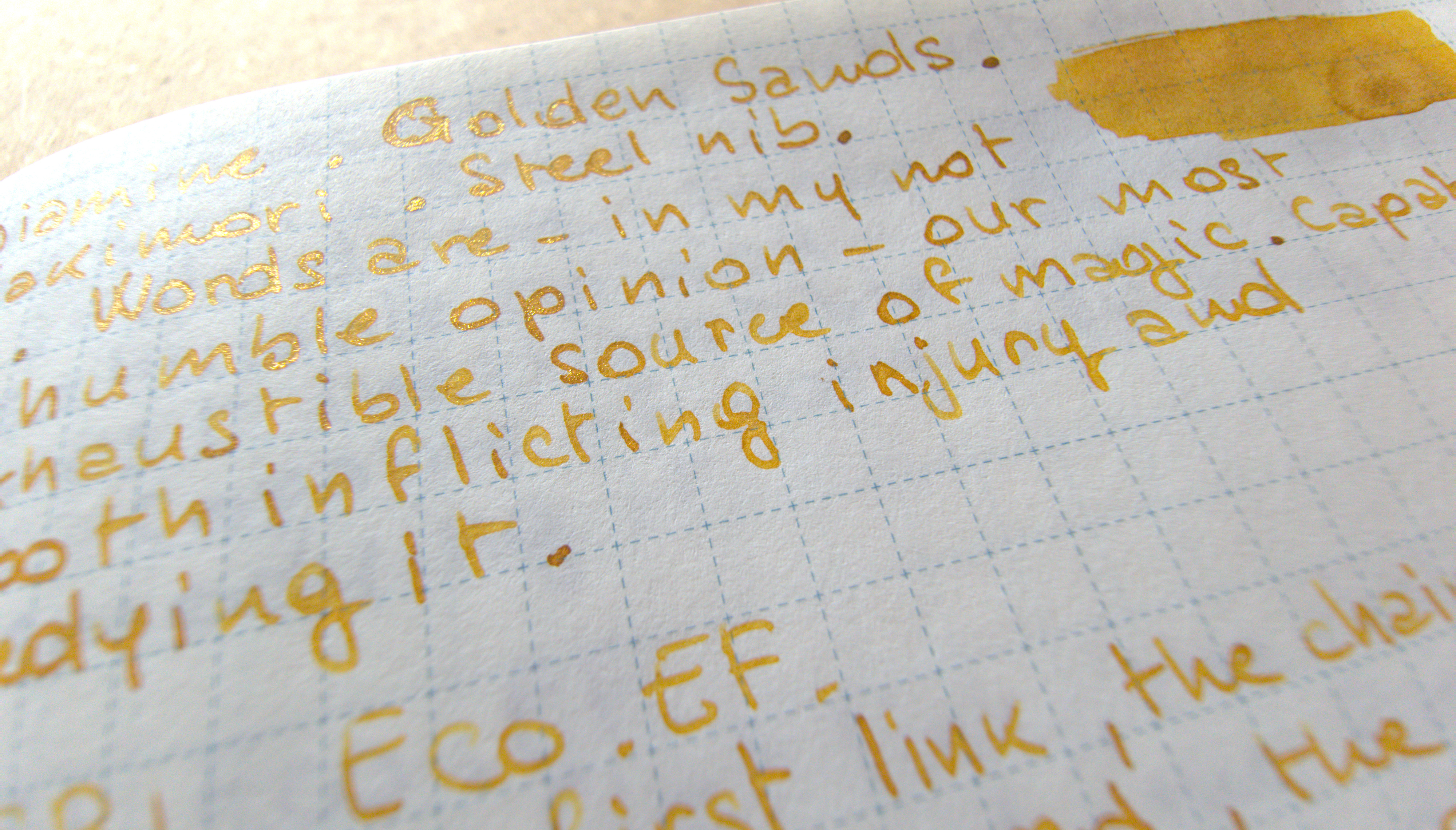 Anche se, va detto, Diamine non lo vende come un inchiostro oro, lo vende come sabbia dorata, quindi, non è davvero colpa loro se il risultato non ricorda affatto coccarde natalizie o inviti pretenziosi vergati in foglia d'oro.