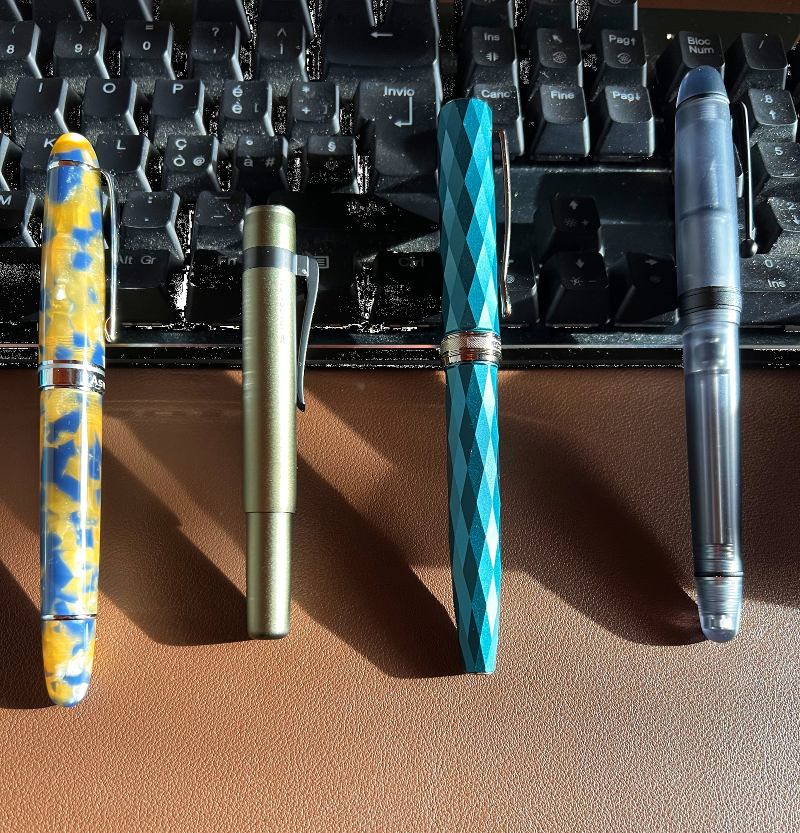 Complici i saldi su Amazon dei giorni passati ho preso quattro penne che mi attiravano e guardavo da un pò. La spesa totale è stata di ben 100 eur circa in totale, mentre a prezzo pieno avrei speso una trentina di eur in più. Ve le mostro in uno scatto di gruppo, per poi, man mano che andrò ad inchiostrarle, mostrarle singolarmente.