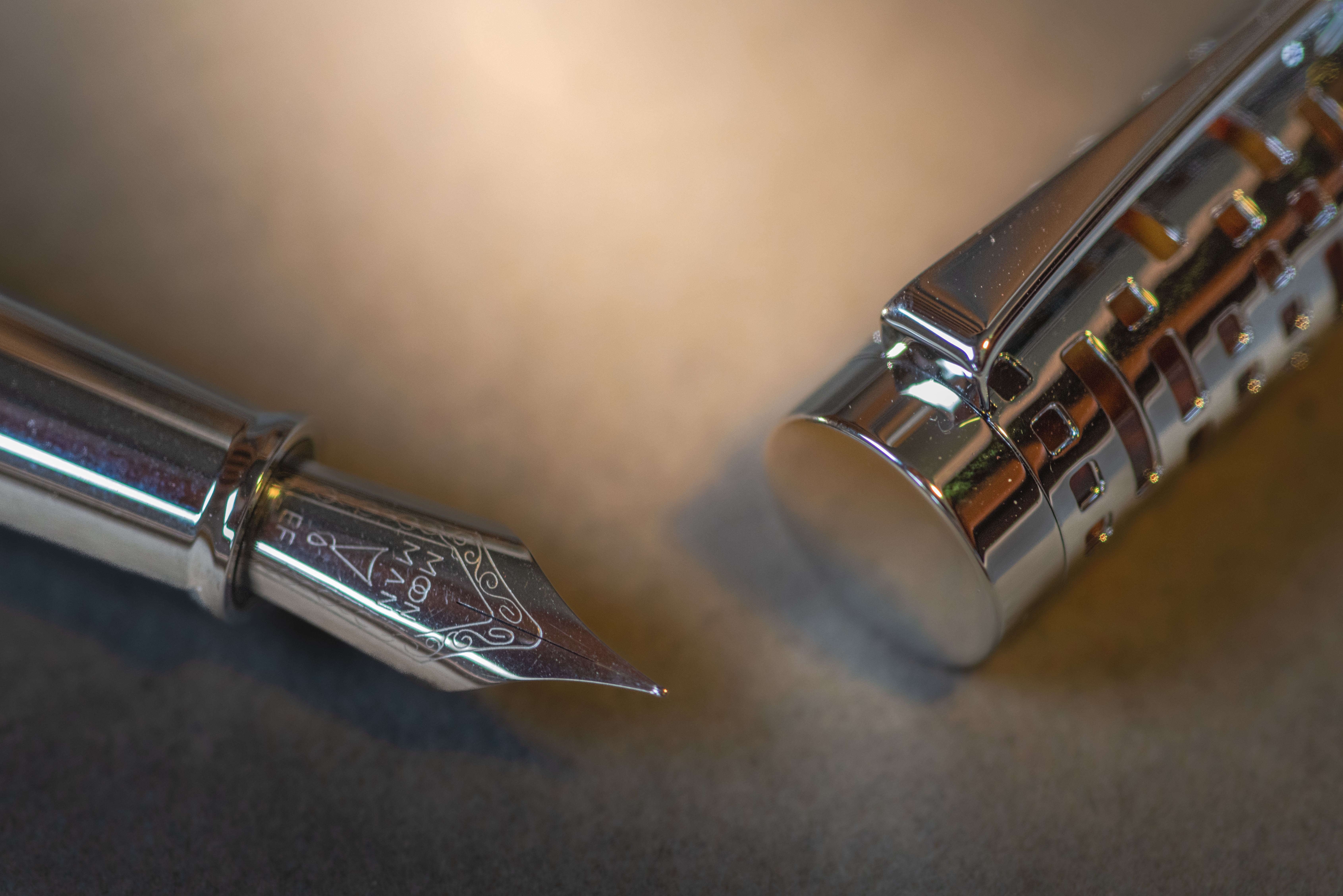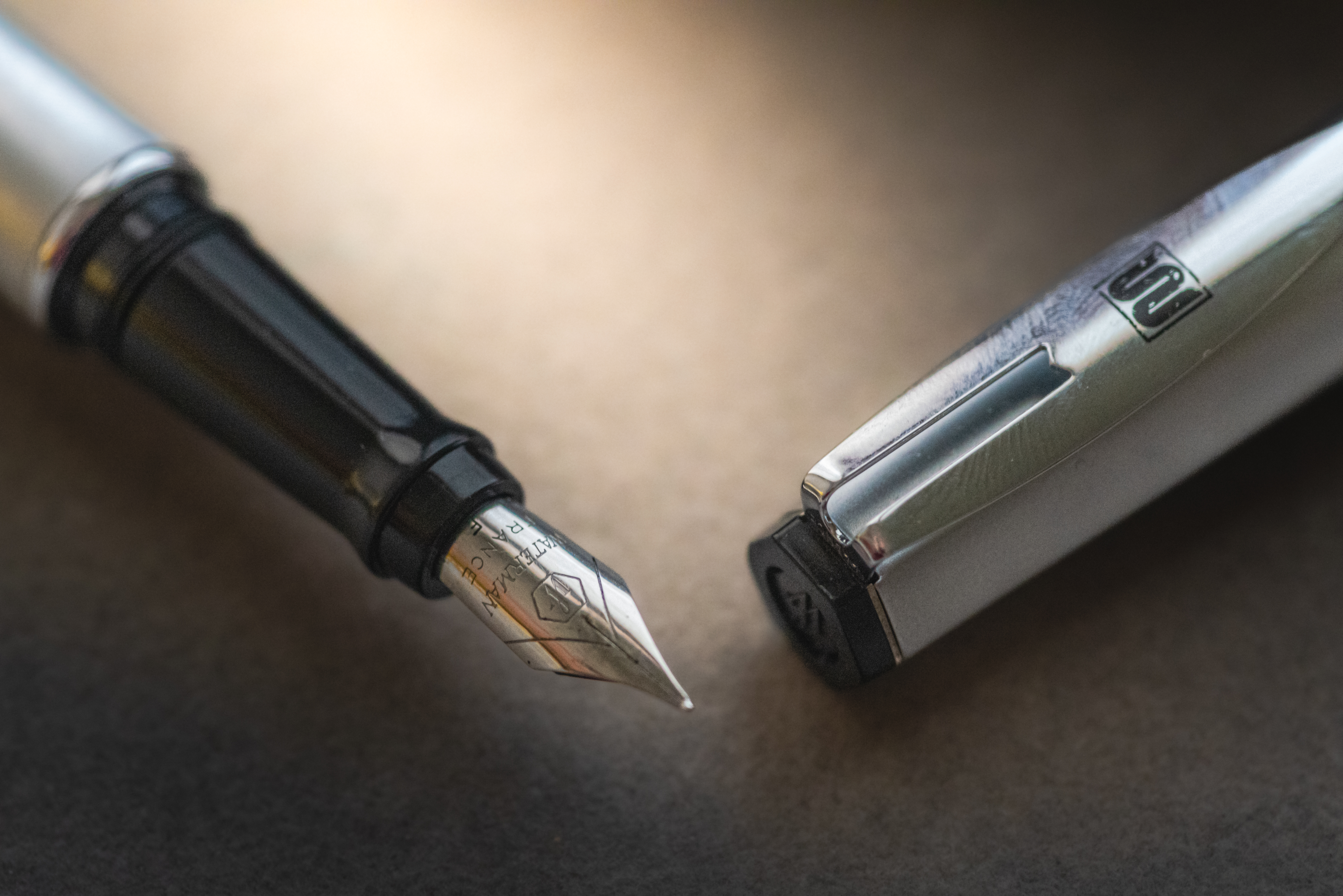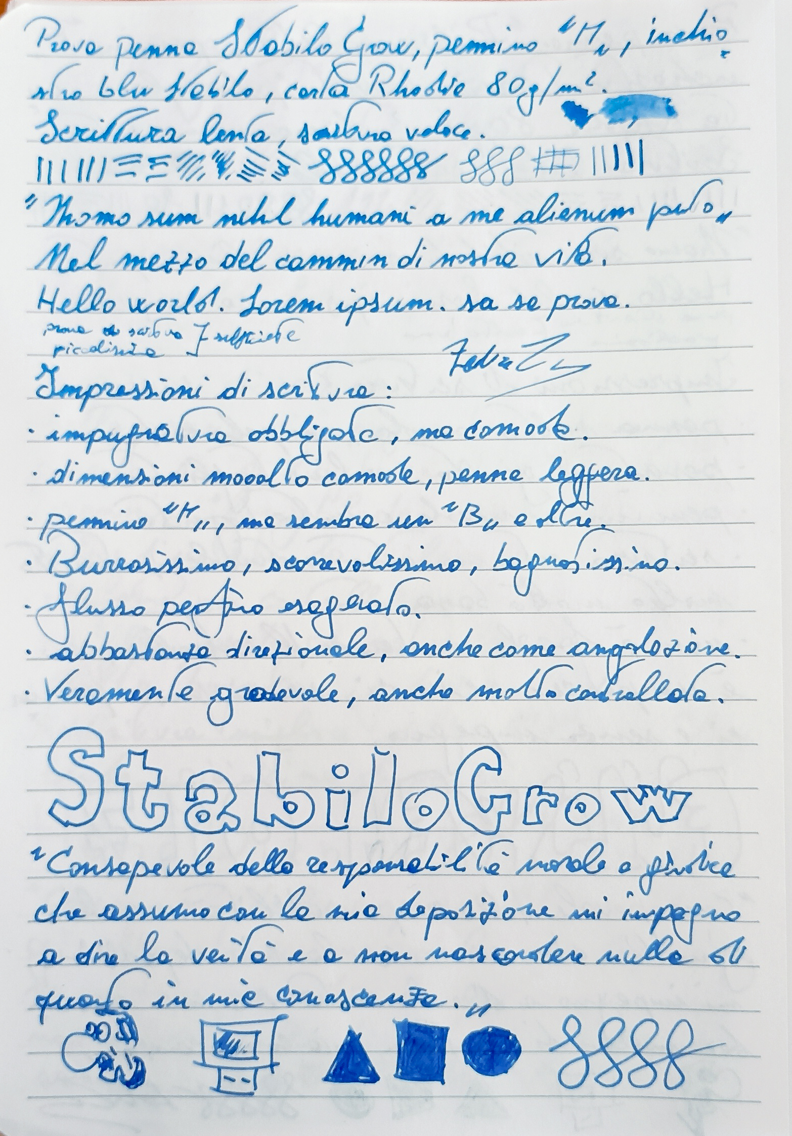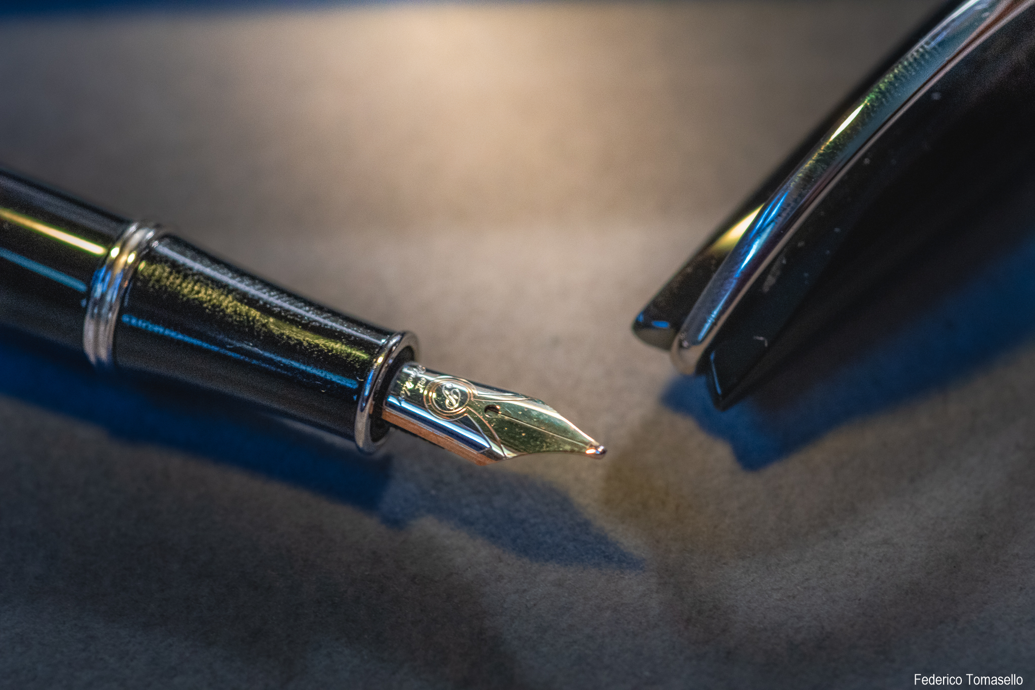 Di buono c'è il pennino, che funziona bene (anche se ha un sottile, quasi inavertibile, ma costante attrito "grattoso") e che, nonostante il tratto "M" bello bagnato e ampio, è stranamente sia controllabile che naturale. Insomma, ci si scrive bene.