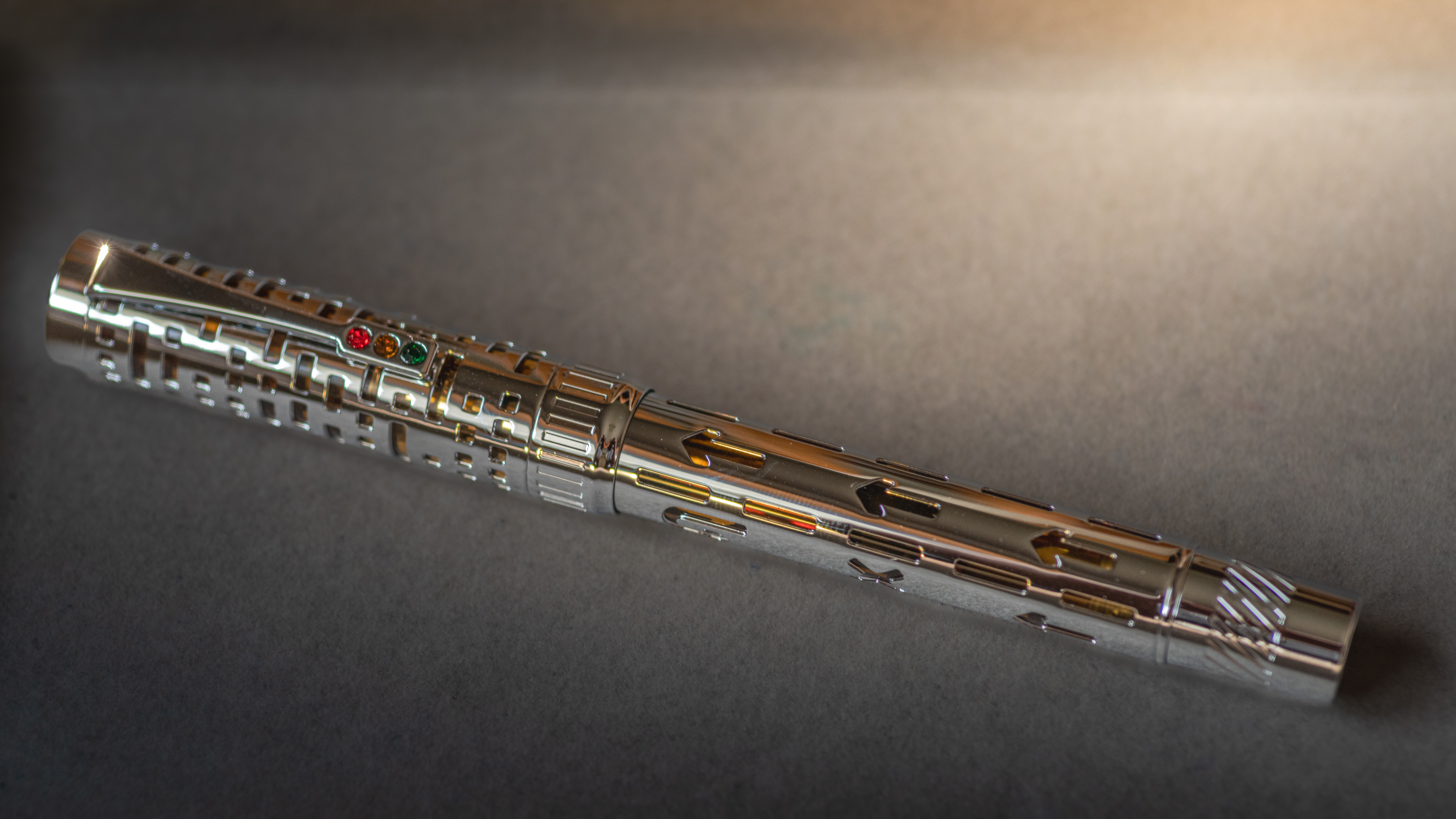 Iniziamo dalle dolenti note: i materiali e la costruzione della penna non valgono le Jinhao da 2€, senza tema di smentita. Plasticaccia brutta e sottile. In compenso la costruzione è un po' meglio, le linee sono ben affusolate, gli elementi ben saldati e adattati, la veretta d'argento è meno pacchiana di quel che temessi e il "gioiello" sulla parte posteriore della clip non è brutto. Il fermaglio ha una bellissima forma e funziona molto bene.