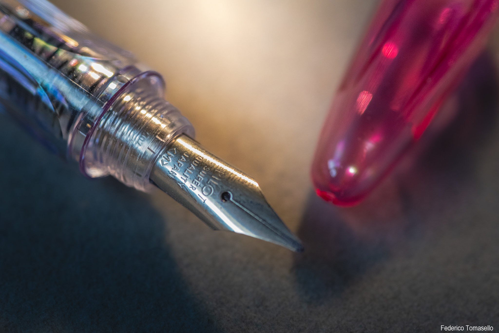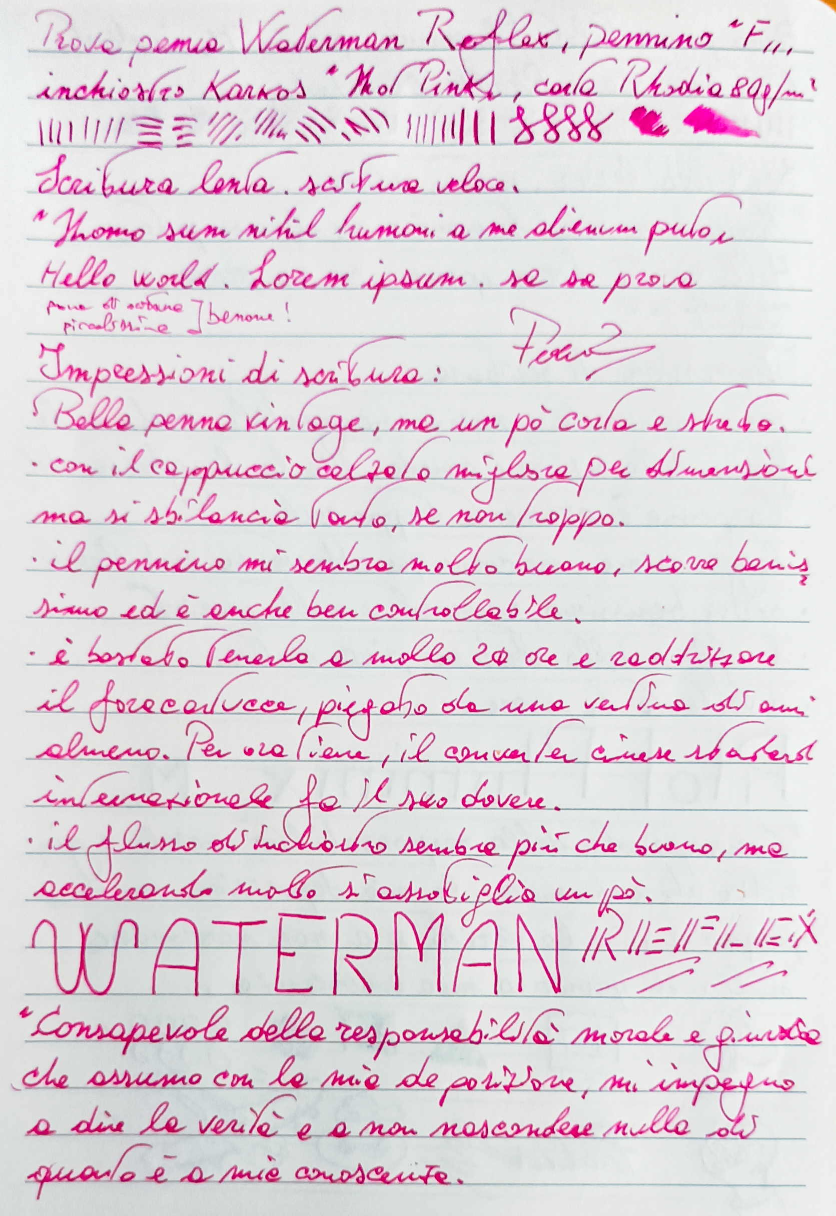 Caricata ad inchiostro "Hot Pink" di Karkos (non volevo sprecare altri colori nel caso non avesse funzionato), la penna s'è rivelata ancora un'ottima scrittrice (e l'inchiostro non è risultato affatto male).