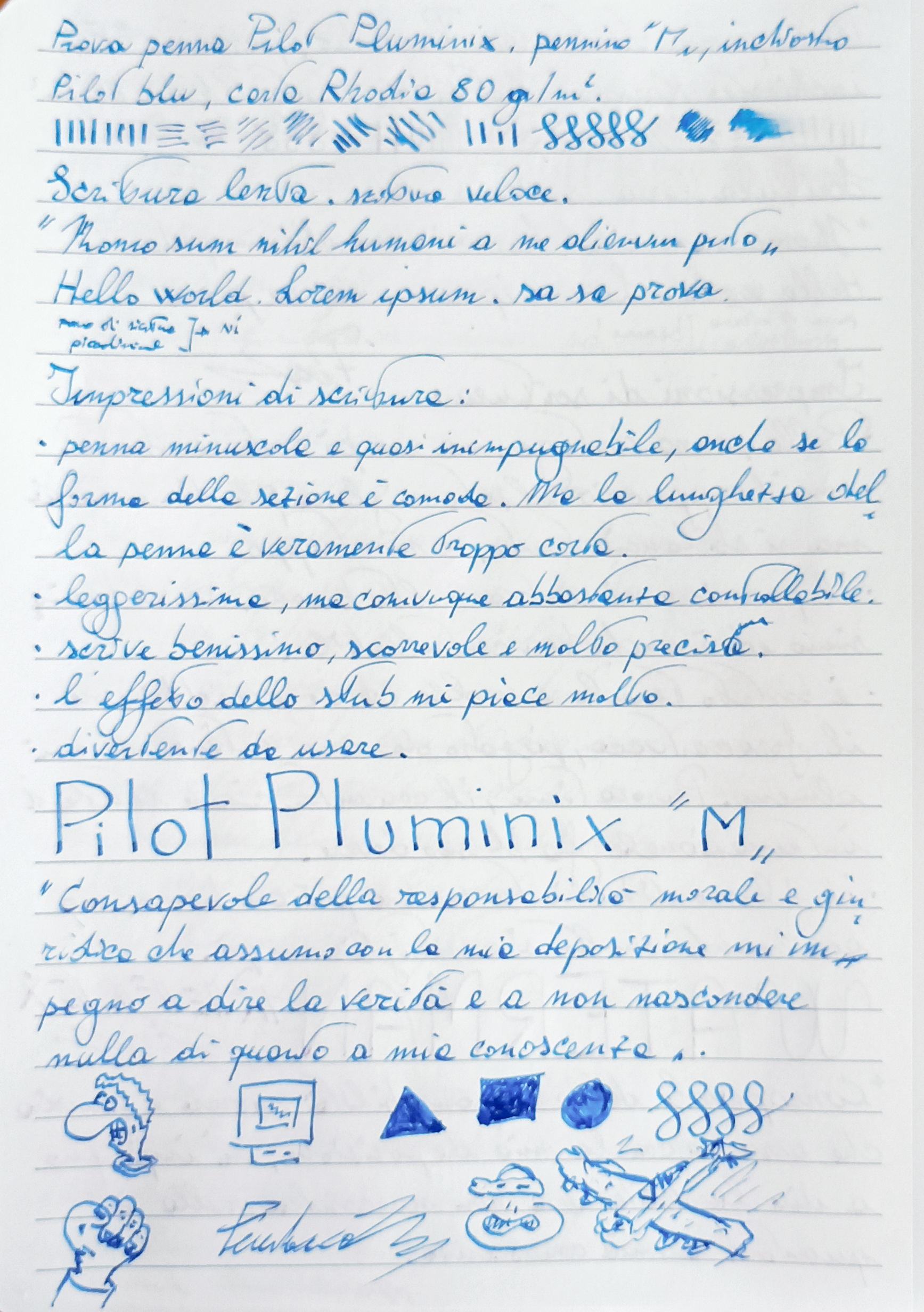 Avevo visto qualche recensione della Plumix e mi aveva incuriosito; in occasione del Pelikan HUB isernino allora ho chiesto una Plumix alla cortesissima proprietaria, che mi ha rifilato una Pluminix: c'era così tanta affluenza e così tanto da seguire che non avuto cuore di rettificare... e quindi mi sono comprato la Pluminix