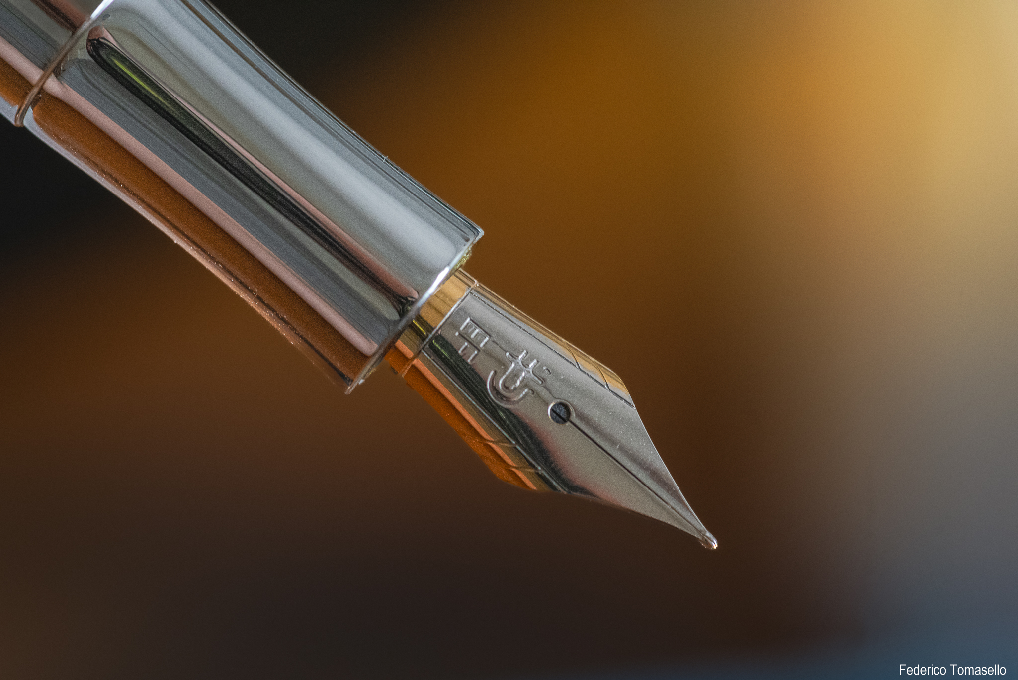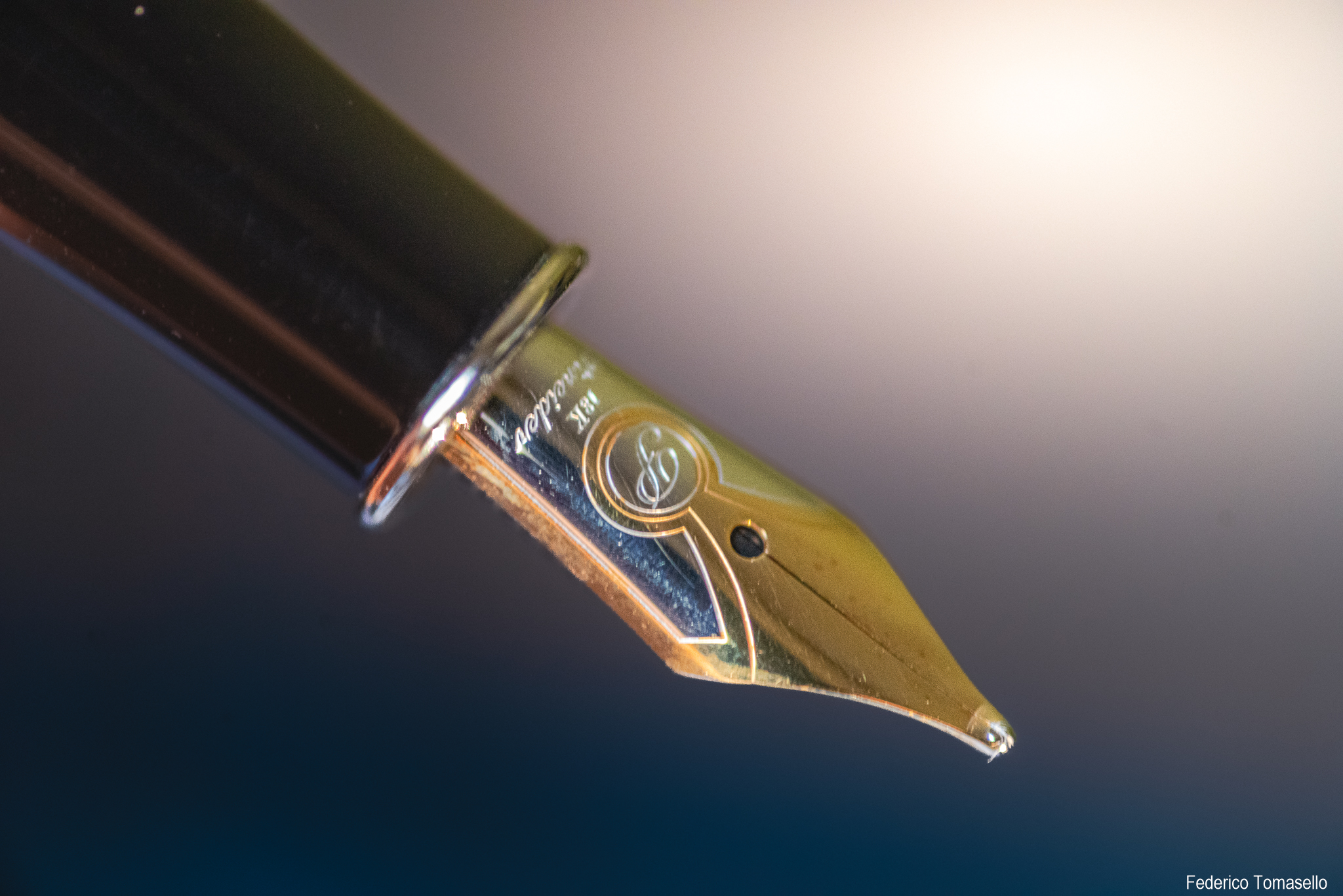 Il pennino, in oro 18k, è fra le note liete: pur essendo molto piccolo, mi ci sono trovato bene fin da subito. Scorrevole, molleggiato, non troppo preciso (ma il tratto B non aiuta in questo), ma in compenso molto naturale e "arioso". Viene da farci svolazzi su svolazzi, mi ci escono delle firme bellissime con una grafia che non sapevo di avere