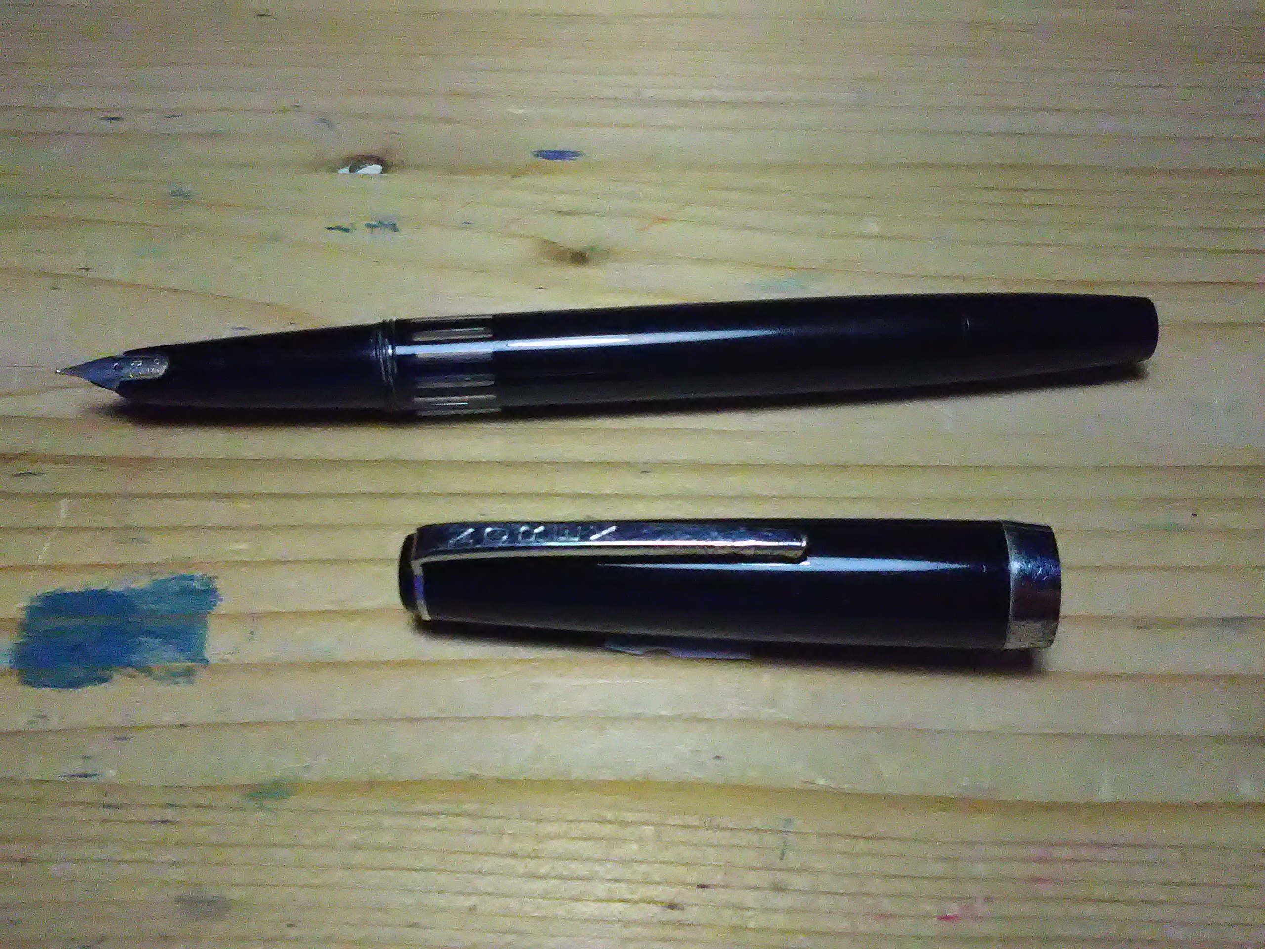 Questa è a stantuffo, pennino semi carenato in acciaio dorato (quasi tutta scomparsa) tipico anni 60/70, lo troviamo, più o meno uguale, sulle Lamy, Faber Castel ecc. Cappuccio a vite e finestrelle per il controllo del livello.