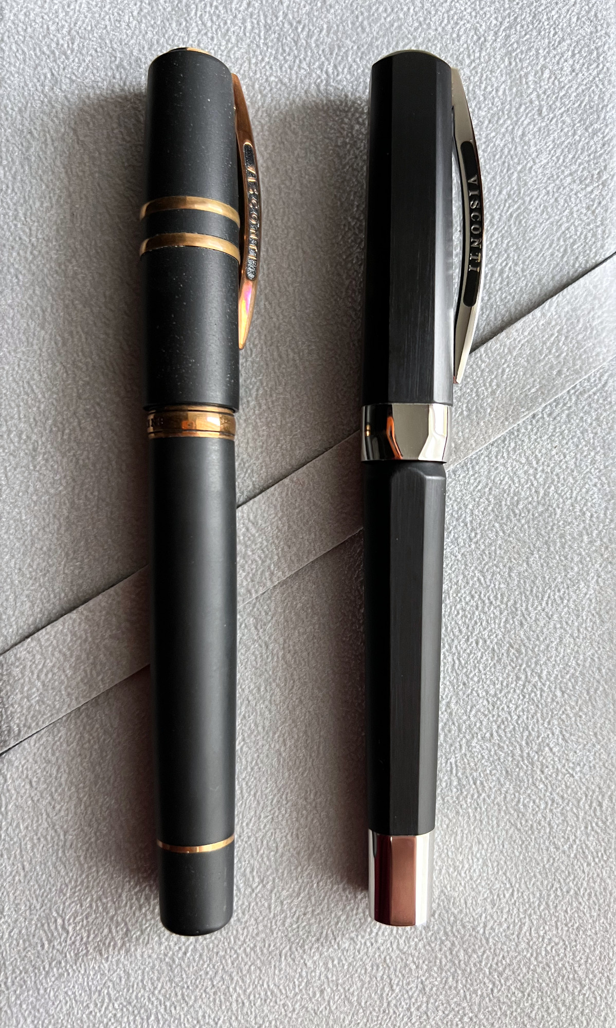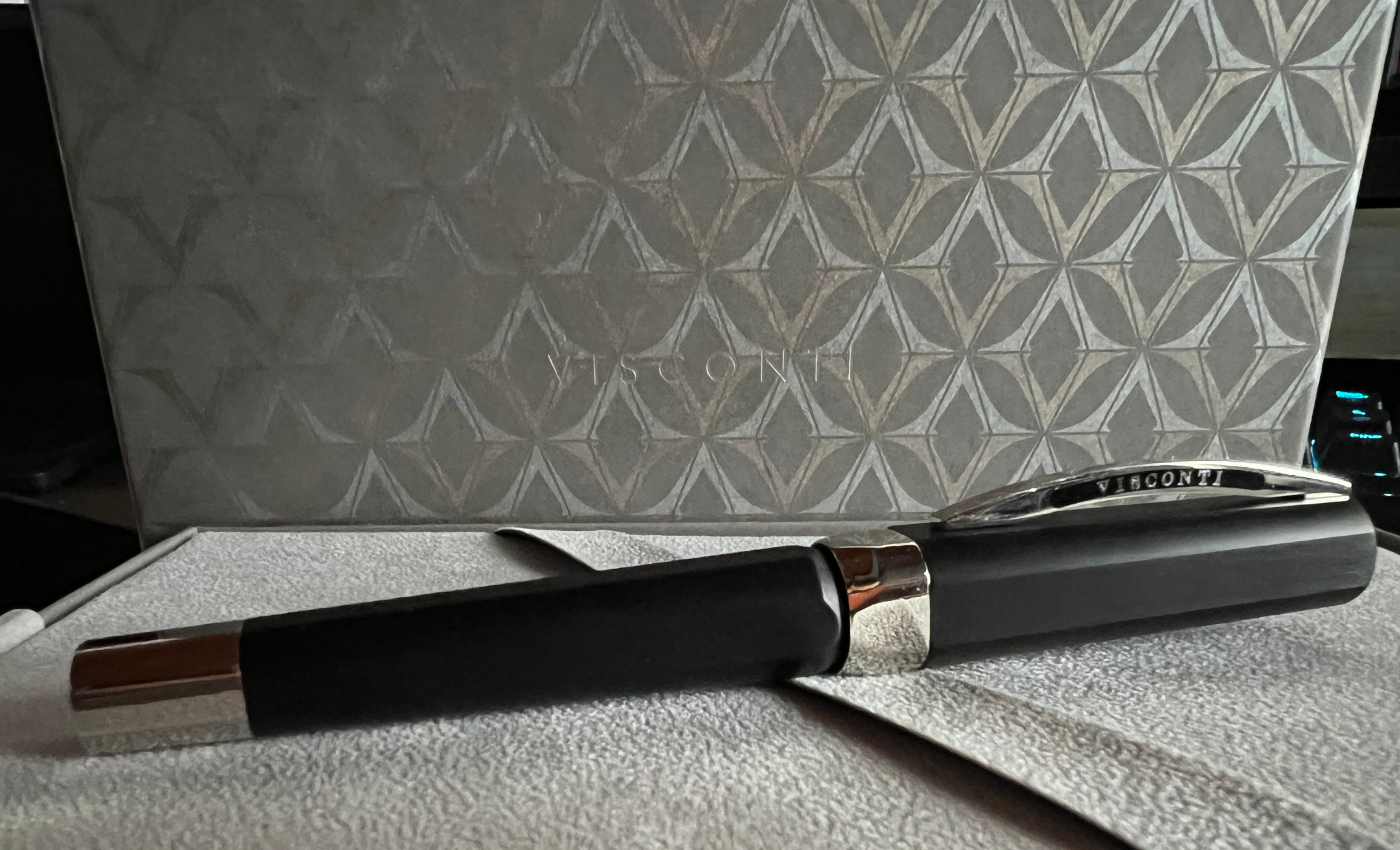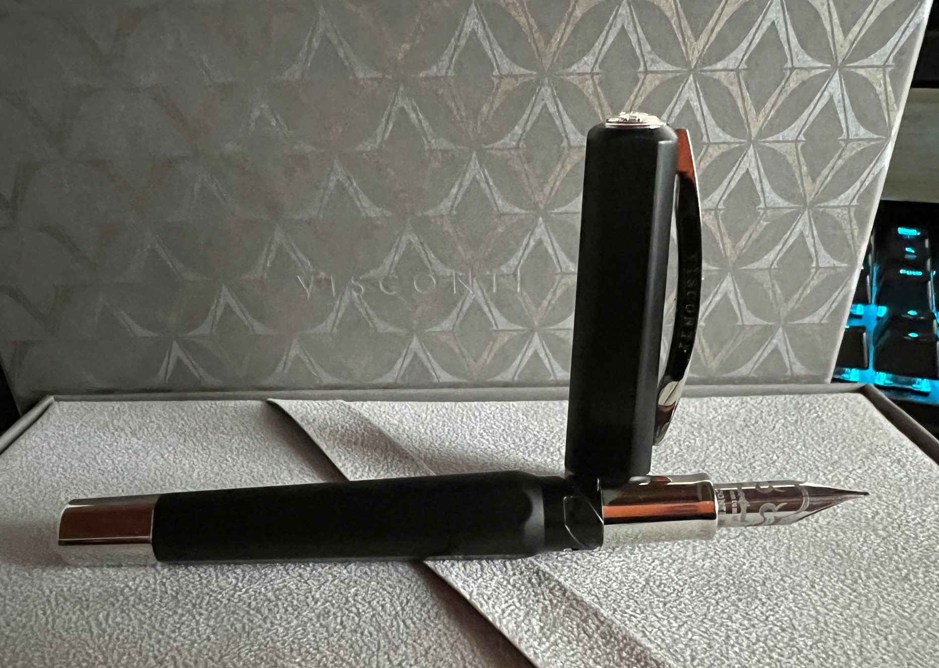 complimenti!, tra le Visconti, la Opera è tra le mie preferite, è una forma strana, ma azzeccata e comoda (che non è scontato, penne strane e scomode se ne contano a bizzeffe). Interessante anche la sobrietà true black. Pesa, quanto, senza cappuccio?