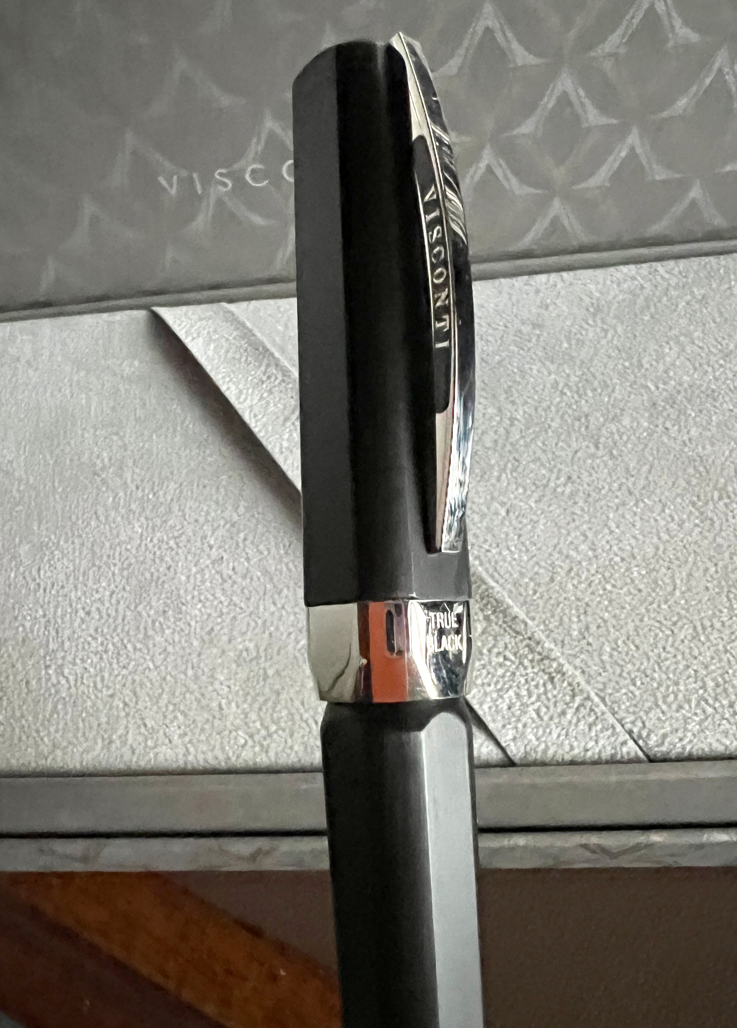 Sulla ghiera decorativa sono incise le parole "True Black", mentre la clip è la più classica delle Visconti. A mio avviso bellissima.