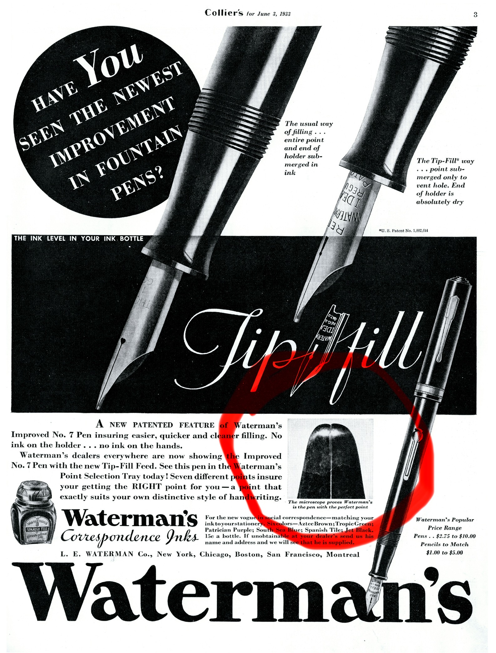 nell'intervento di Musicus sulla Waterman N. 7 c'è la pubblicità del nuovo sistema Tip-Fill