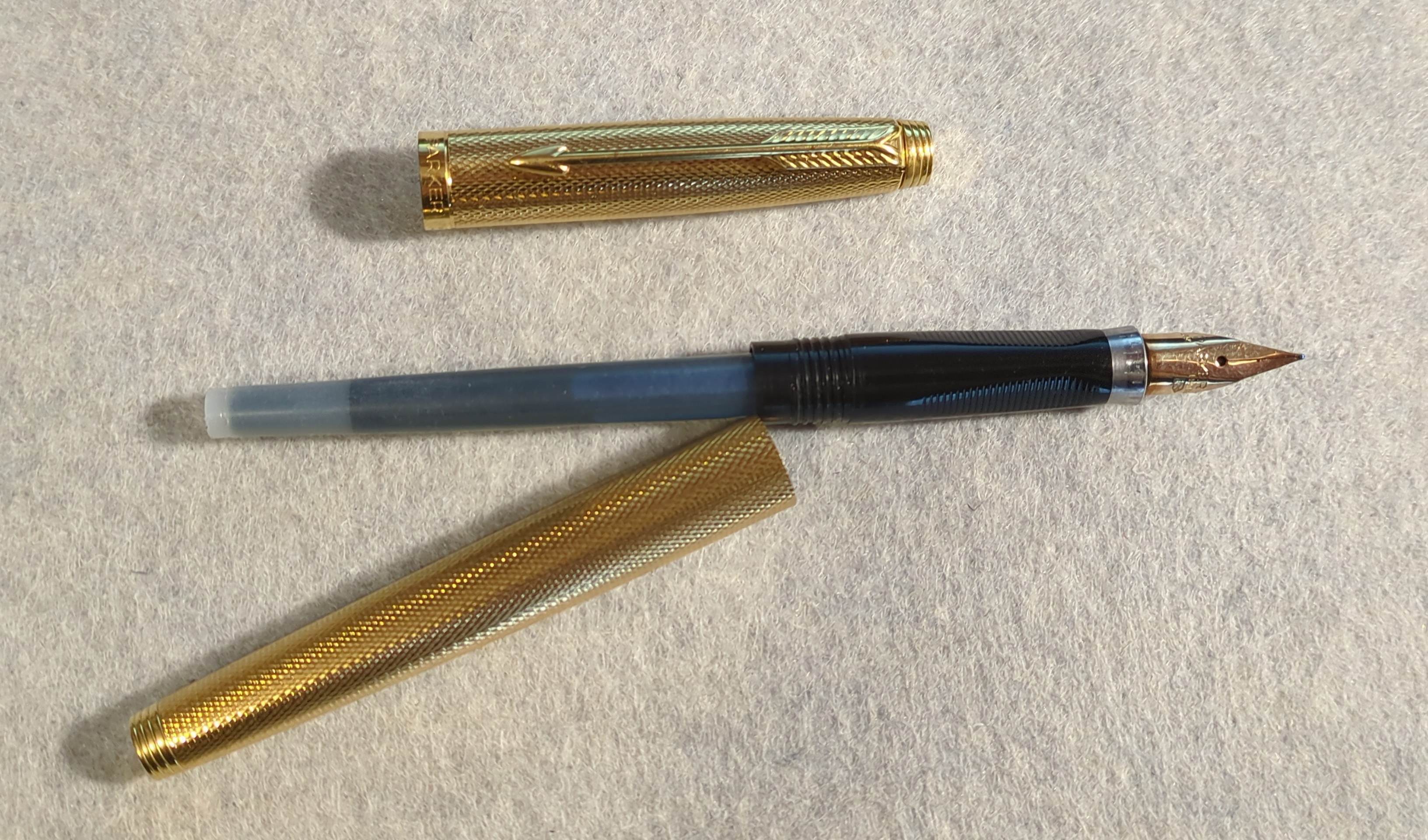 Bel ritrovamento! La 75 è uno dei capisaldi della produzione Parker, una vera pietra miliare introdotta negli anni 60 e prodotta nelle sue varie rivisitazioni fino agli anni 90. Questa poi è una livrea particolarmente elegante