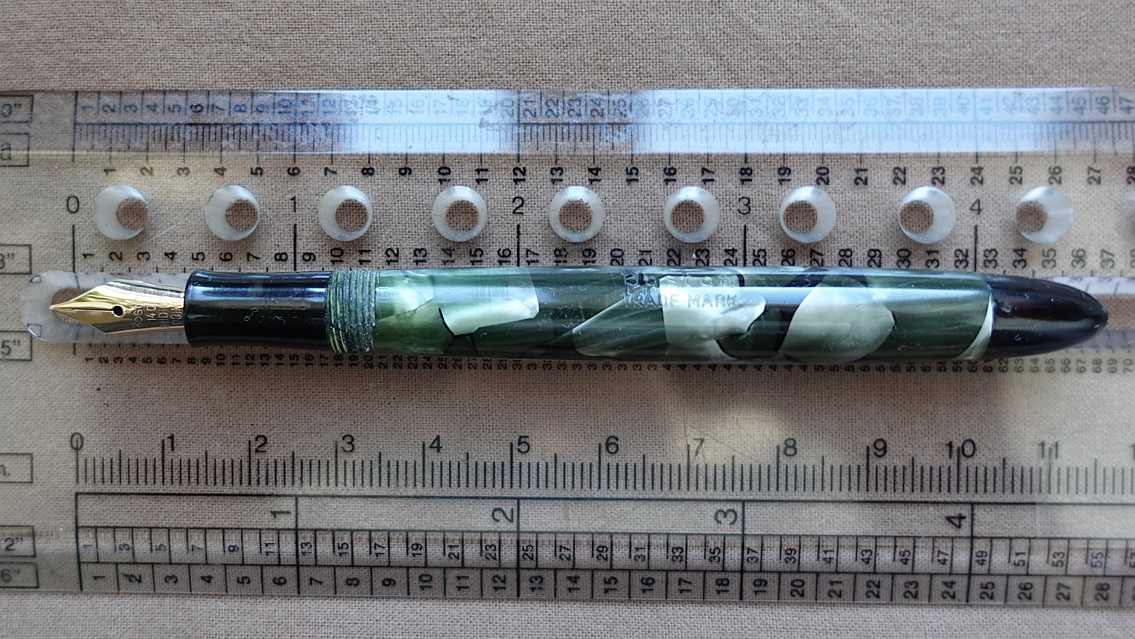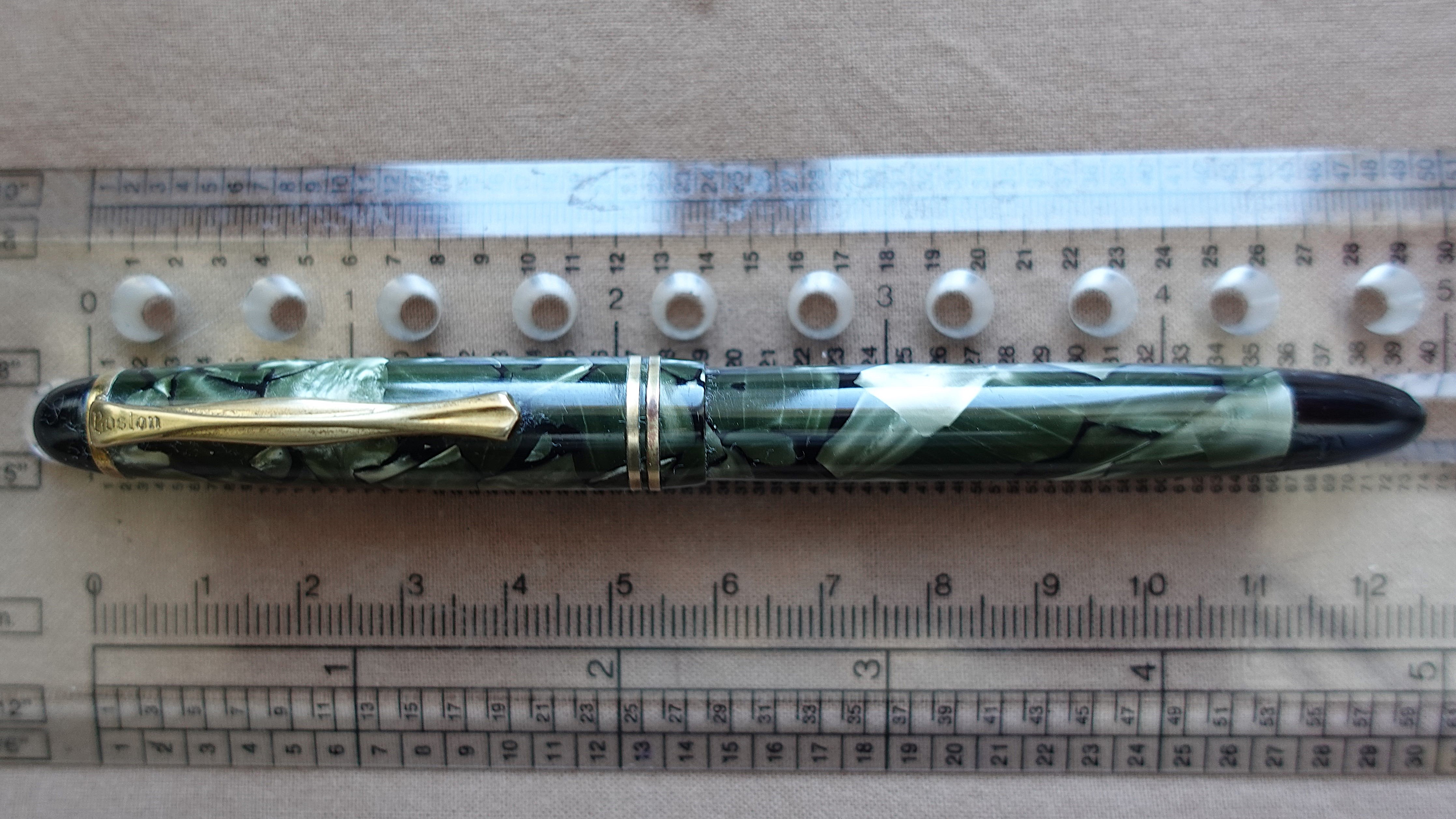 @Esme : se Boston è un marchio olandese questo spiegherebbe in parte l'estrema somiglianza con la stilografica a pulsante di fondo che possiedo. La celluloide marmorizzata verde nero è esattamente la stessa, così come la dimensione millimetro più millimetro meno. Non ha la forma ogivale ma è tronco conica. Penna olandese fatta negli anni 50 con pennino in oro Bock. L'unica incisione sul fusto della mia stilografica è IMPERIAL AUTOMATIC. Chissà se la Boston produceva anche penne no name. :?: