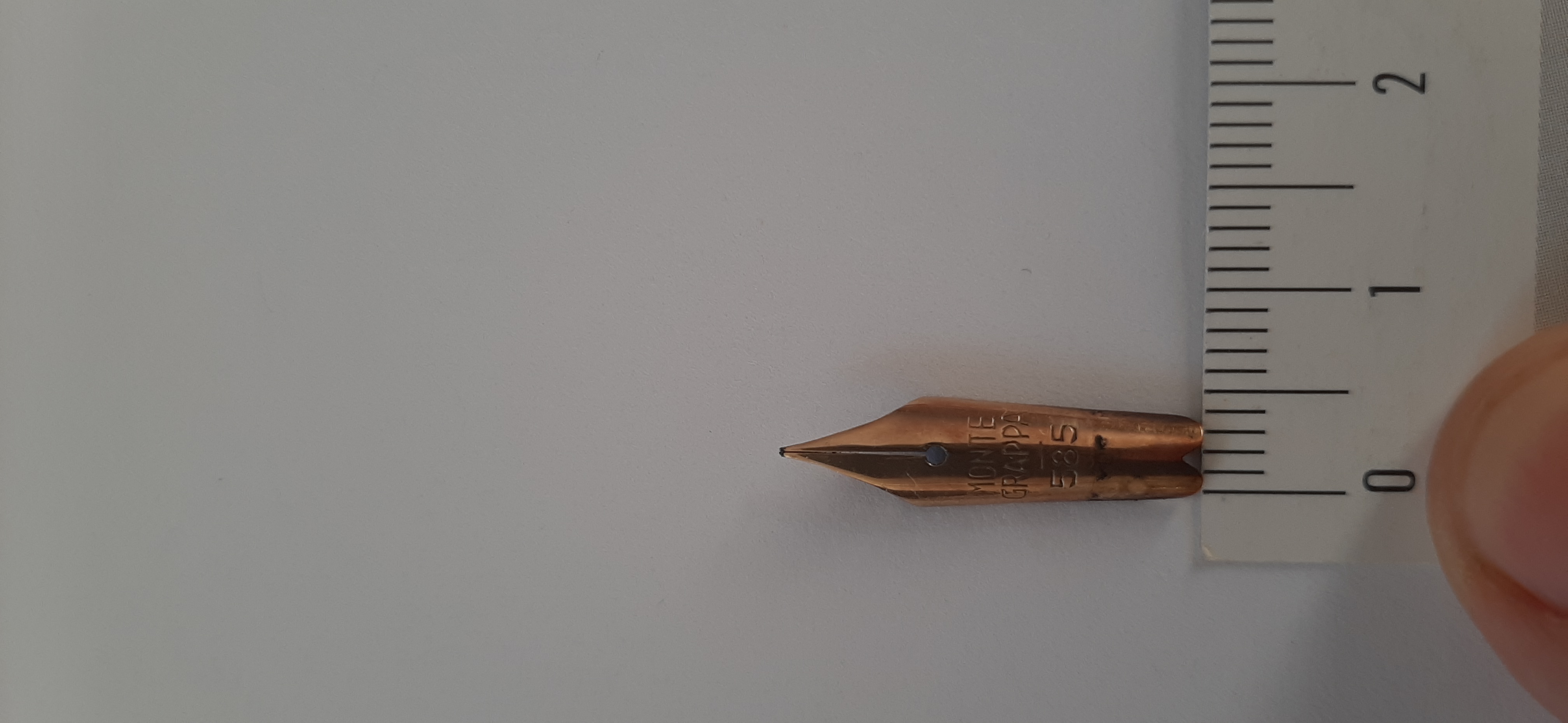 Mi sono fatto coraggio e ...ho tirato, eccolo qui il "grattoso" ( confermo che a mio avviso ha perduto l'iridio), come potete vedere è davvero piccolino, dove trovare un sostituto ( che non deve grattare ma essere ...liscio e morbido, tratto possibilmente M o F abbondante, possibilmente in oro, possibilmente prezzo abbordabile, se Montegrappa ancora meglio)? È possibile ? ( mi acconterei di un qualsiasi pennino che riportasse in vita la mia Montegrappa ...oro e scorrevole però ci terrei) ....pennino cinese su Ali?