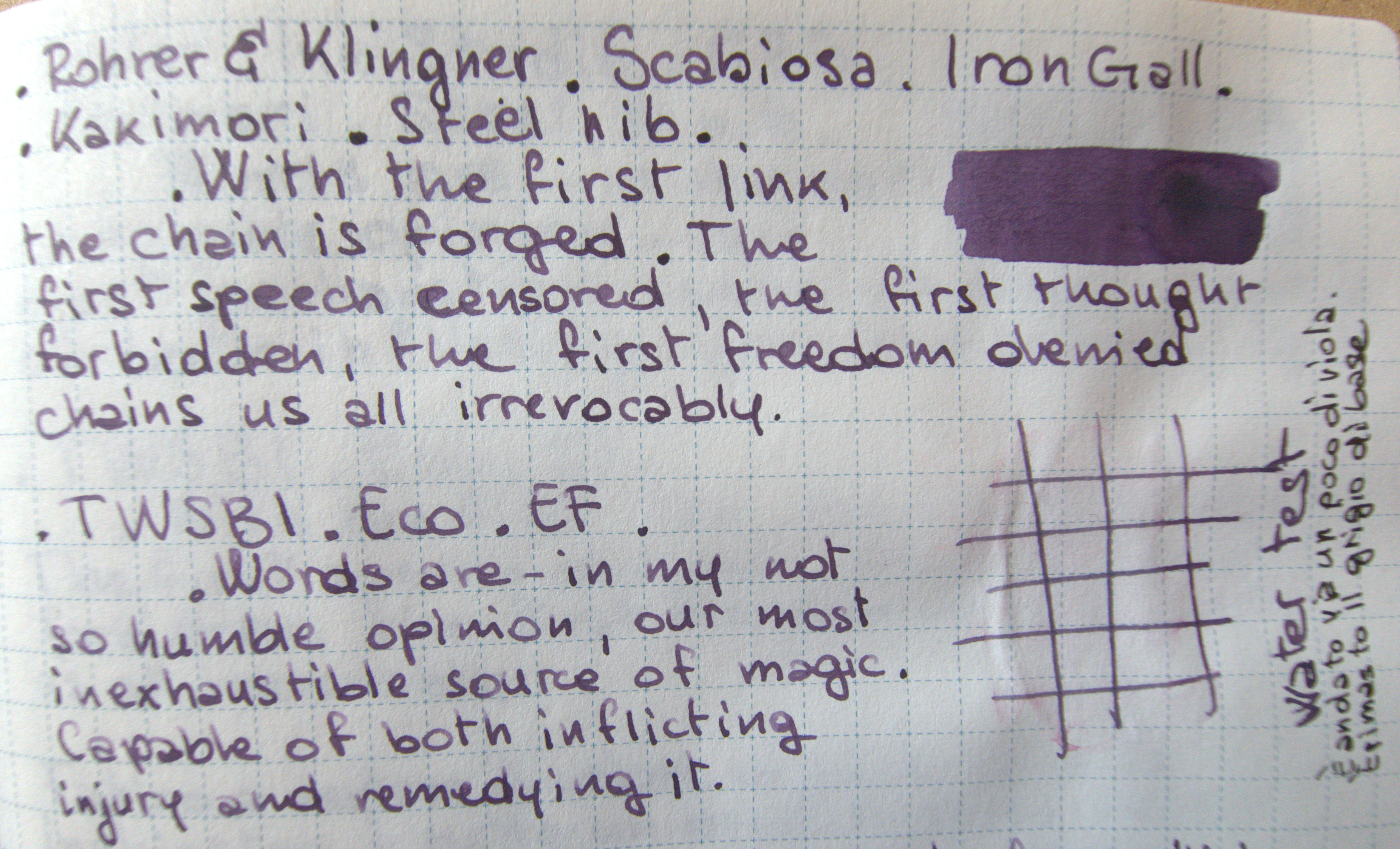Quindi, sì, direi che TWSBI EF è "abbondante", lo è per le mie preferenze di EF. Tra gli occidentali, resta comunque un EF accettabile. L'EF Parker, per esempio, è grossissimo. Per i miei standard è praticamente un BB