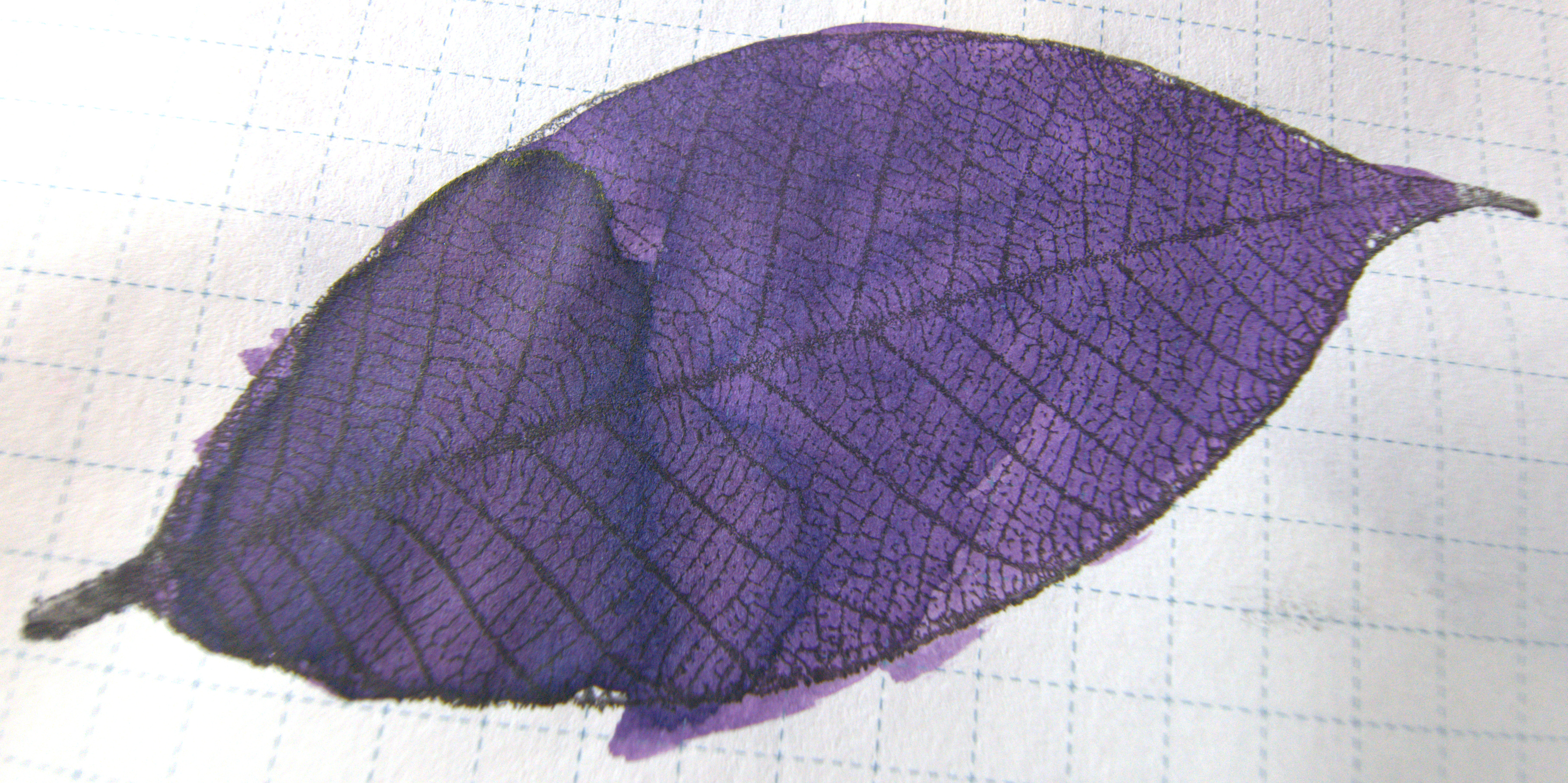 Visto dal vero è un inchiostro interessantissimo. All'apparenza è un viola-blu ma rivela velature rosate davvero interessanti ed è uno shader. Io amo gli shader! Nelle aree meno cariche, infatti, emerge con mola delicatezza il magenta che compone questo inchiostro. Il chromashading non è molto alto, non è un multicromatico come alcuni celebri inchiostri di Sailor, ma è lungi dall'essere piatto e noioso.