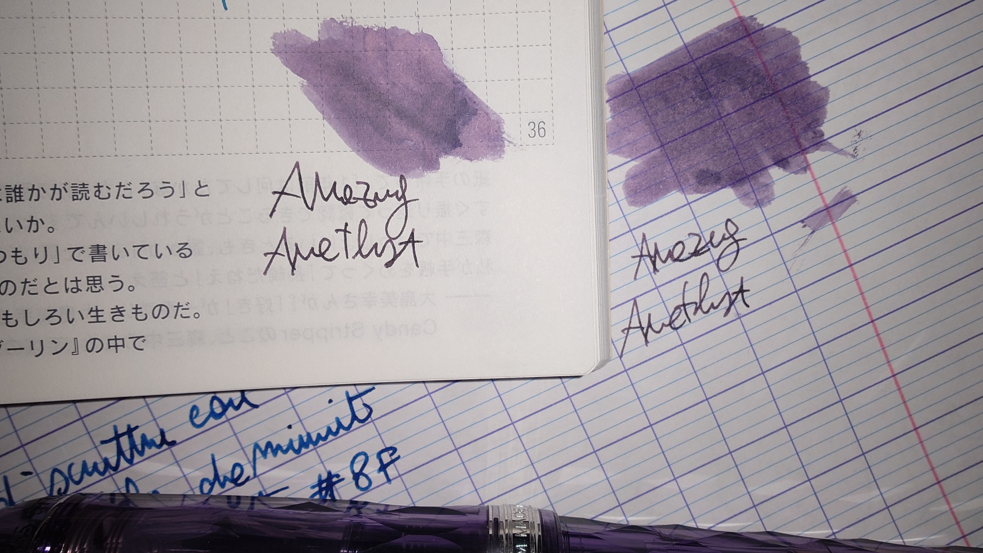 Come colore di base, Amazing Amethyst ha più somiglianze (tra i miei inchiostri) con Aurorealis di Ferris Wheel Press [QUI: viewtopic.php?t=32849 ] con la chiara differenza che Aurorealis è molto scuro e concentrato.