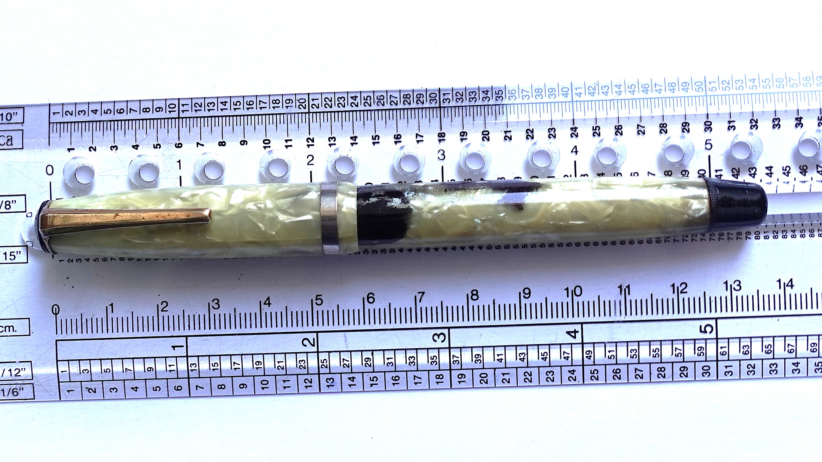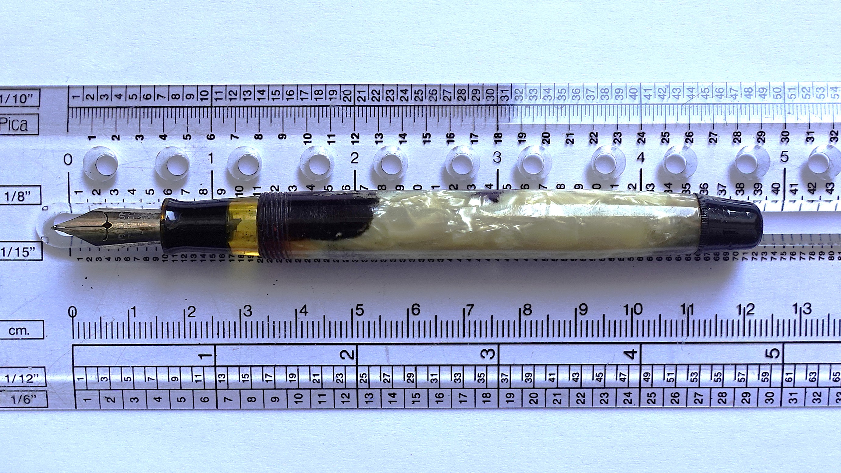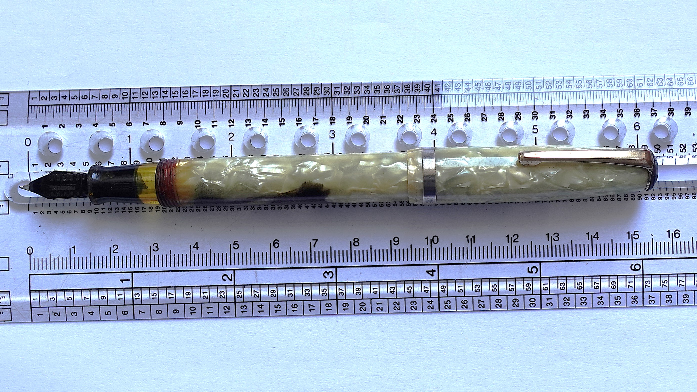 Mi sembrano più macchie di celluloide, le trovo troppo perfette per essere causate dall'inchiostro, in genere si tinge, si macchia quasi tutto il fusto quando è 'inchiostro.