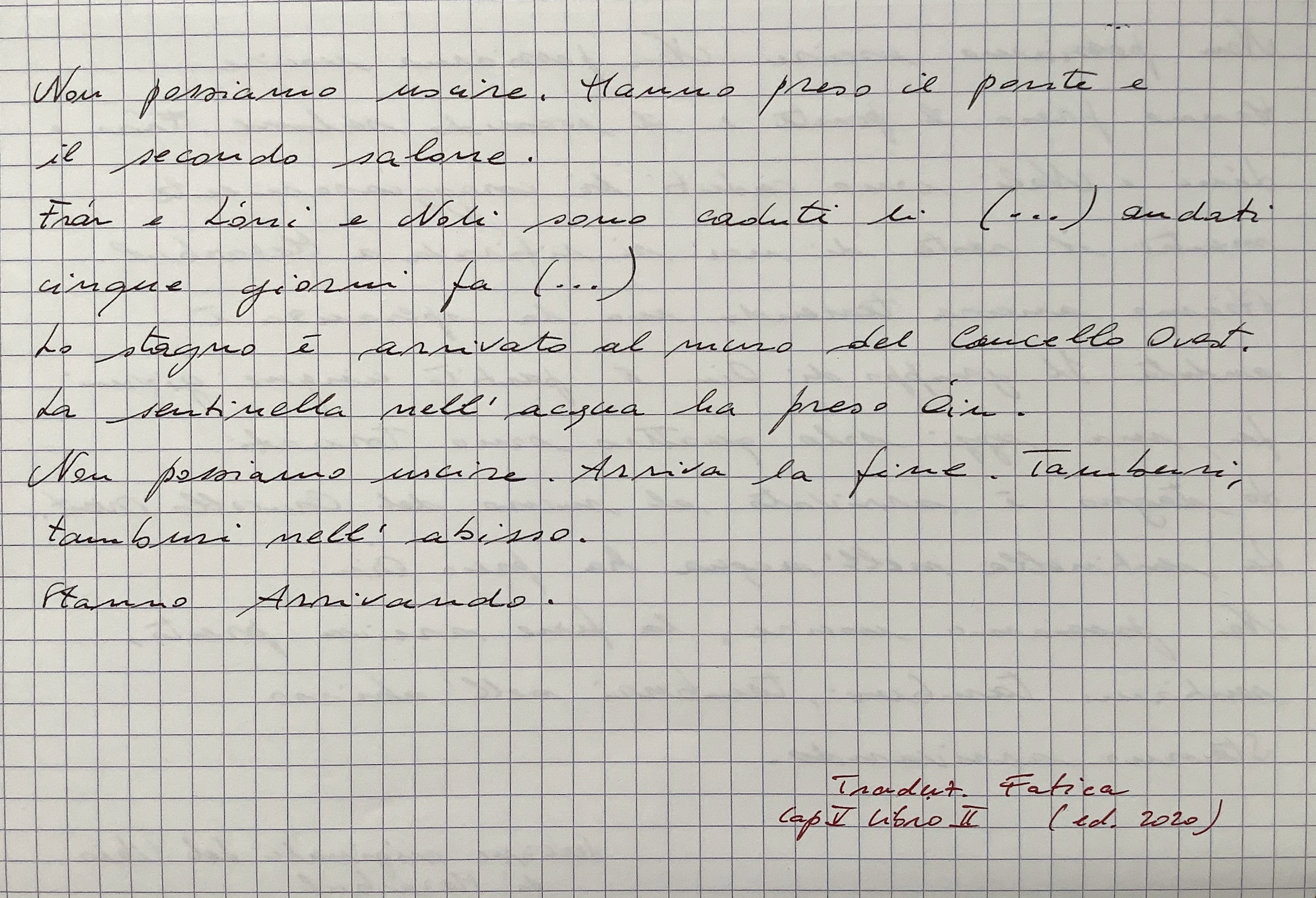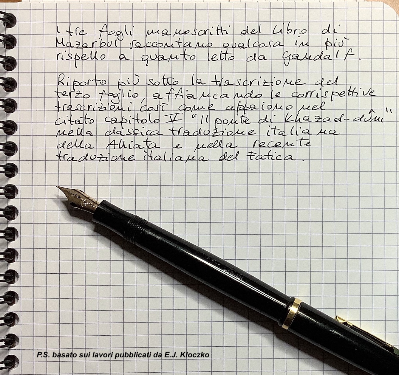 Bel manoscritto! Ho letto senza difficoltà. E non sapevo che Tolkien avesse scritto in rune le tre pagine! Wow. Io ho l’edizione vecchia tradotta dalla signora. Ho sentito che il lavoro del Fatica non è paragonabile, ma parlo per sentito dire quindi non vale.