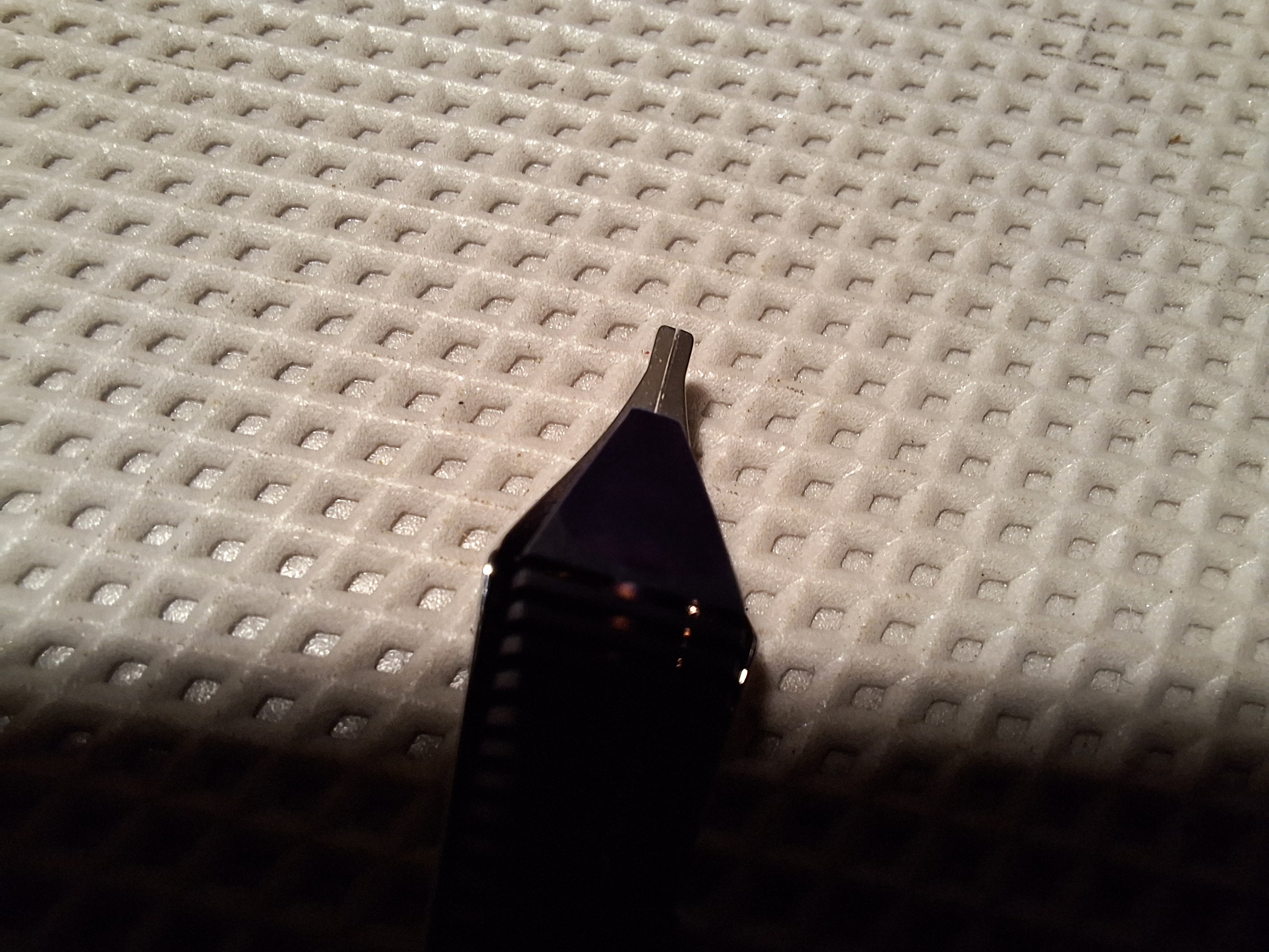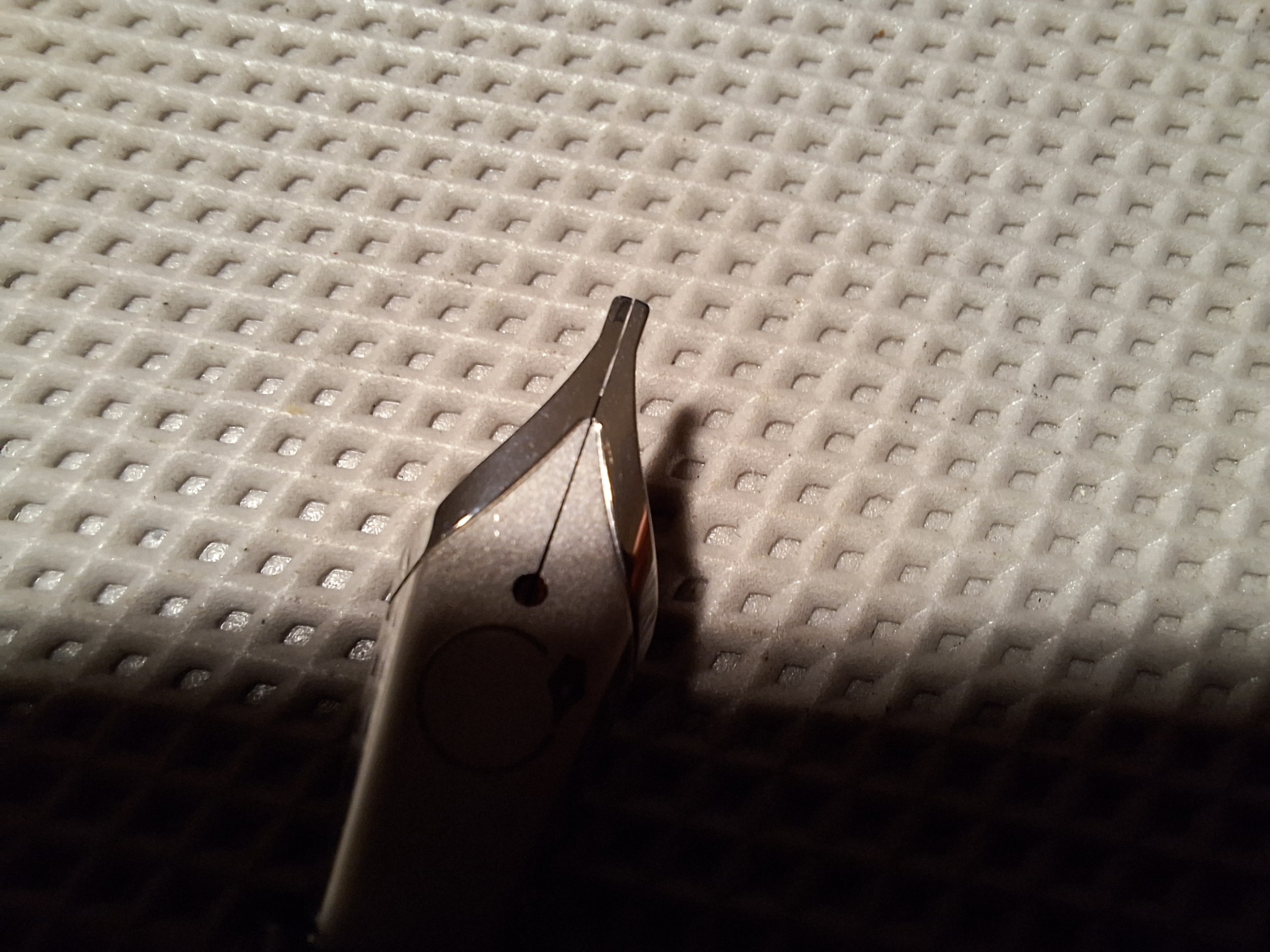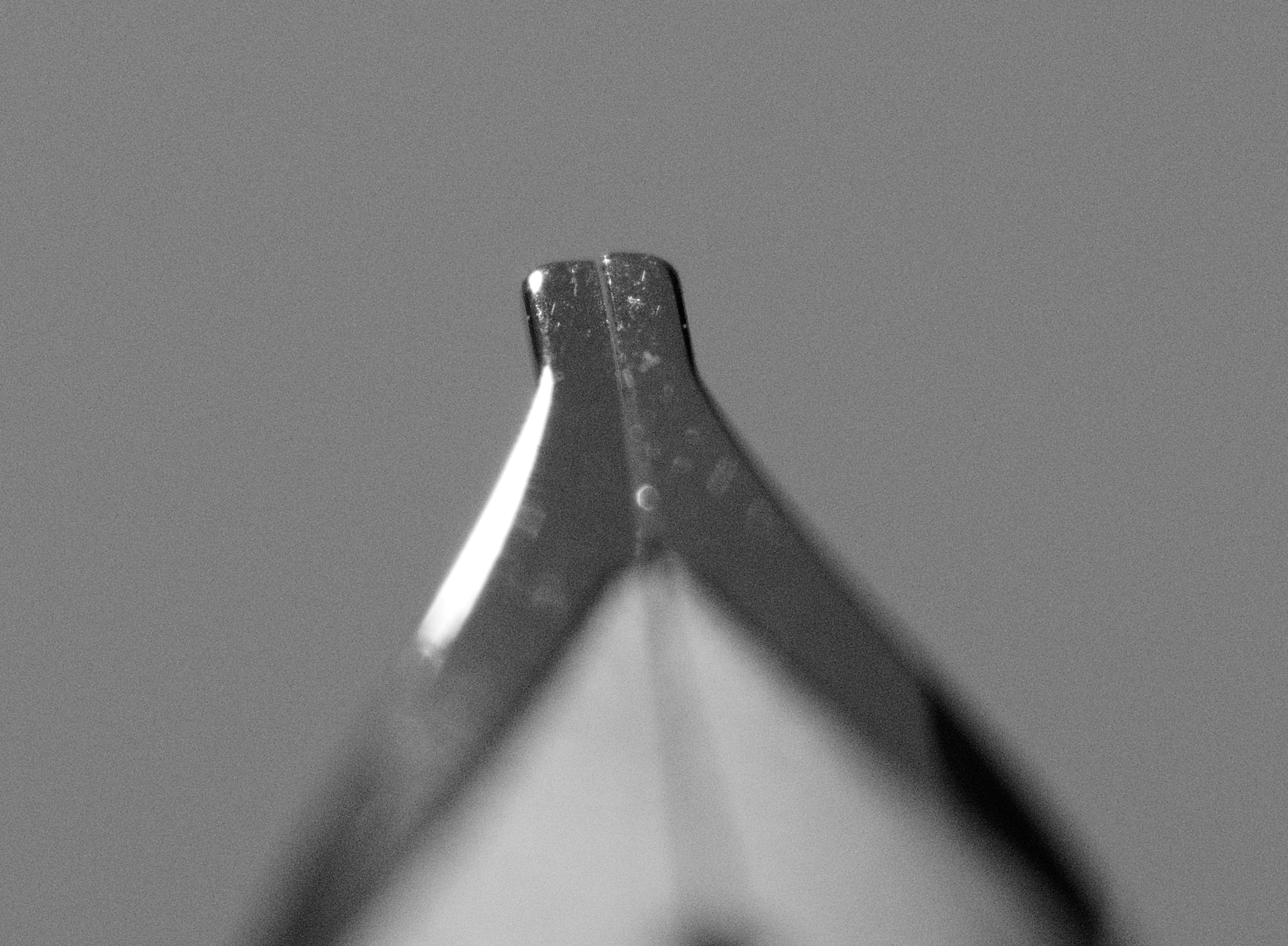 Questo pennino stub 1.1 appena comprato mi pare un po’ strano: i rebbi sono molto separati e non tendono ad avvicinarsi, come credo sia di norma, man mano che dal foro di sfiato si va verso la punta.