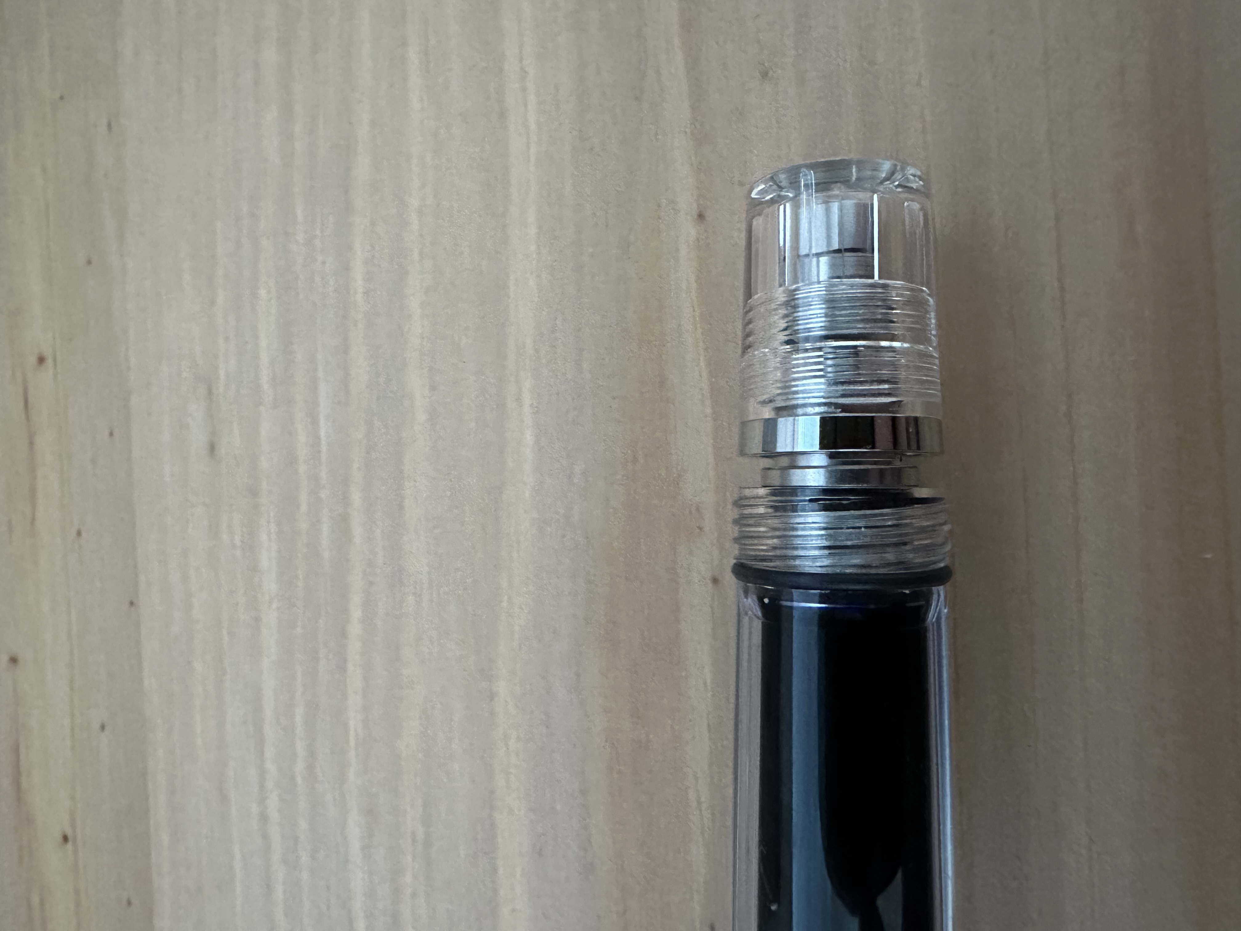 Come viene spiegato nel libretto di istruzioni che fornisce la TWSBI, bisogna aprire (svitare) la siringa per far si che l'inchiostro possa passare per impedire che l'alimentare vada a secco nelle scritture lunghe.