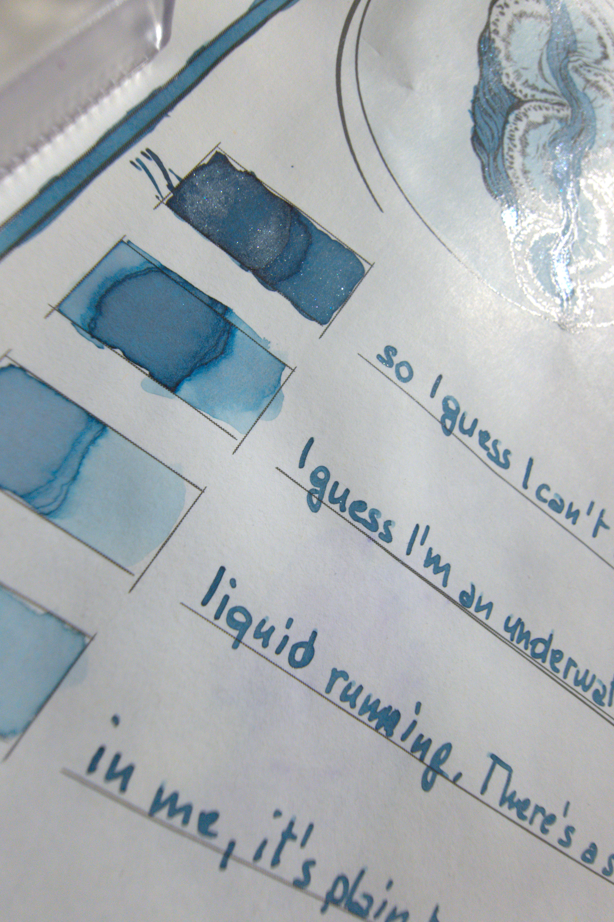 Il comportamento dell'inchiostro è buono. E' leggermente più secco della media Diamine ma non lo è in modo drammatico. Riesco a vedere in questa versione un poco più plumbea di blu la rappresentazione di una bufera nordica ed è un effetto molto piacevole agli occhi.