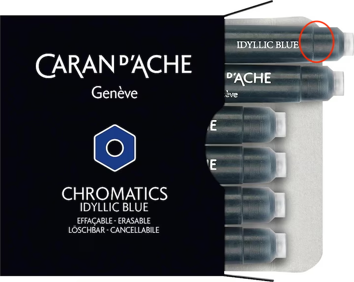 La scanalatura comunque ha probabilmente una utilità tecnica, penso faccia in modo che la cartuccia entri anche in penne che hanno l'imbocco della sezione leggermente più stretto. Le cartucce senza scanalatura se le guardi bene sono leggermente coniche per cui ottengono lo stesso scopo in altro modo, io penso.