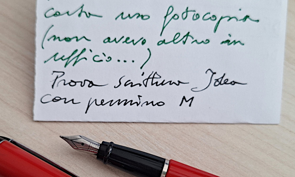Qui sotto una prova di scrittura,, si può confrontare in verde il tratto della Ipsilon (Pennino F) ed in nero quello della Idea (Pennino M).