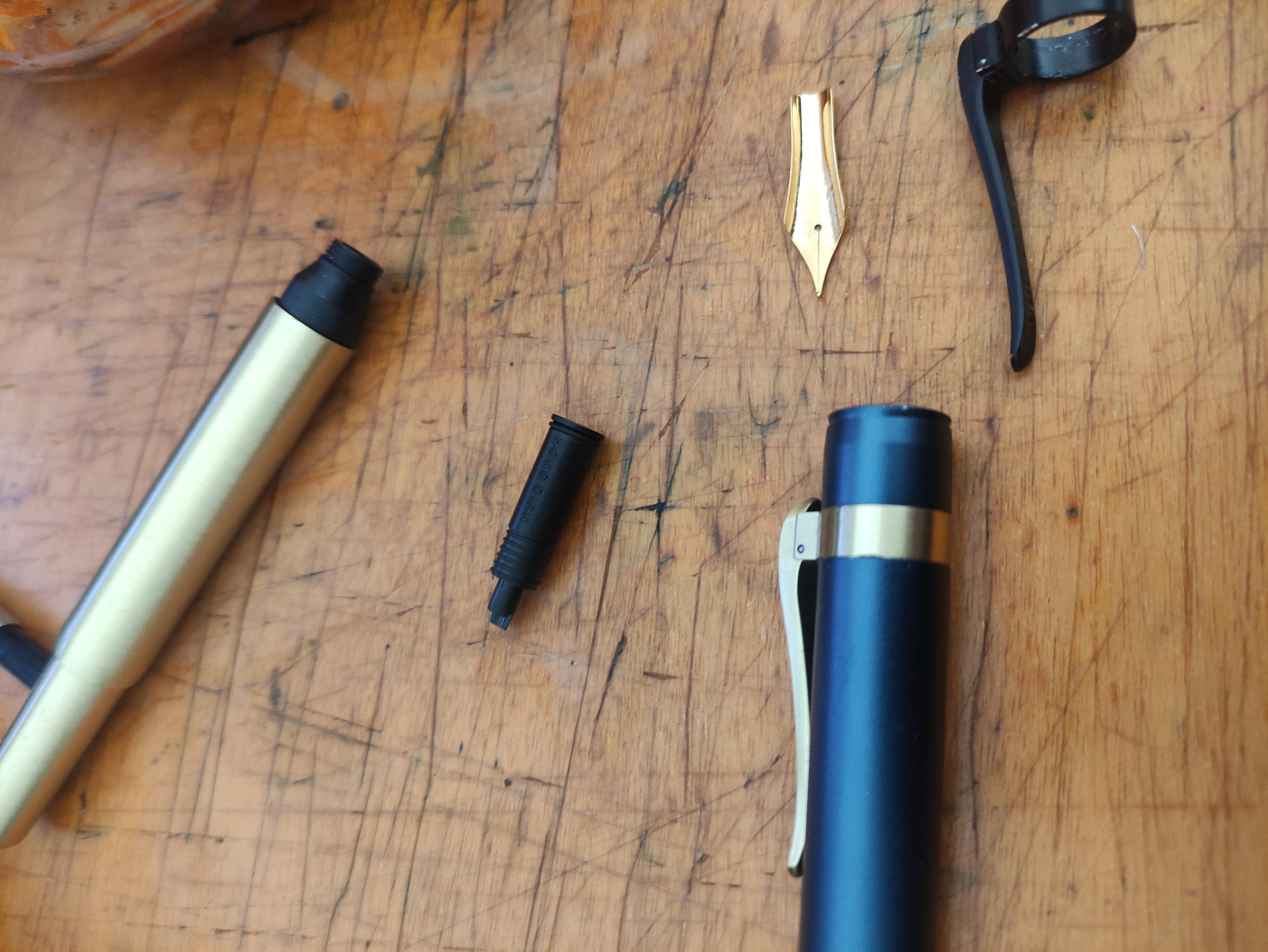 Ora evidenzio una caratteristica di differenza tra la versione ottone e la versione di alluminio. L'alimentatore nella versione ottone è diverso. non ho idea se sia meglio o peggio, ad occhio sembra il tipico alimentatore cinese ma è fatto apposta per alloggiare il pennino hongdian.