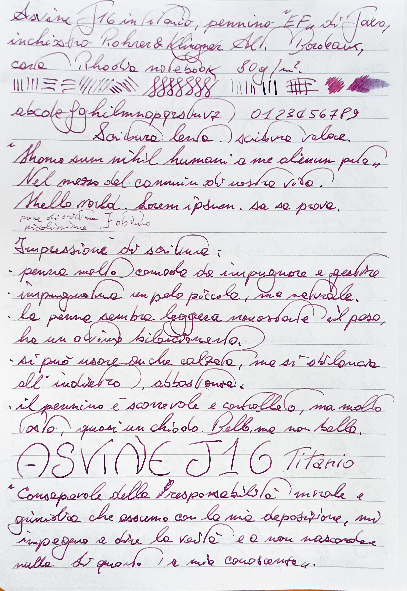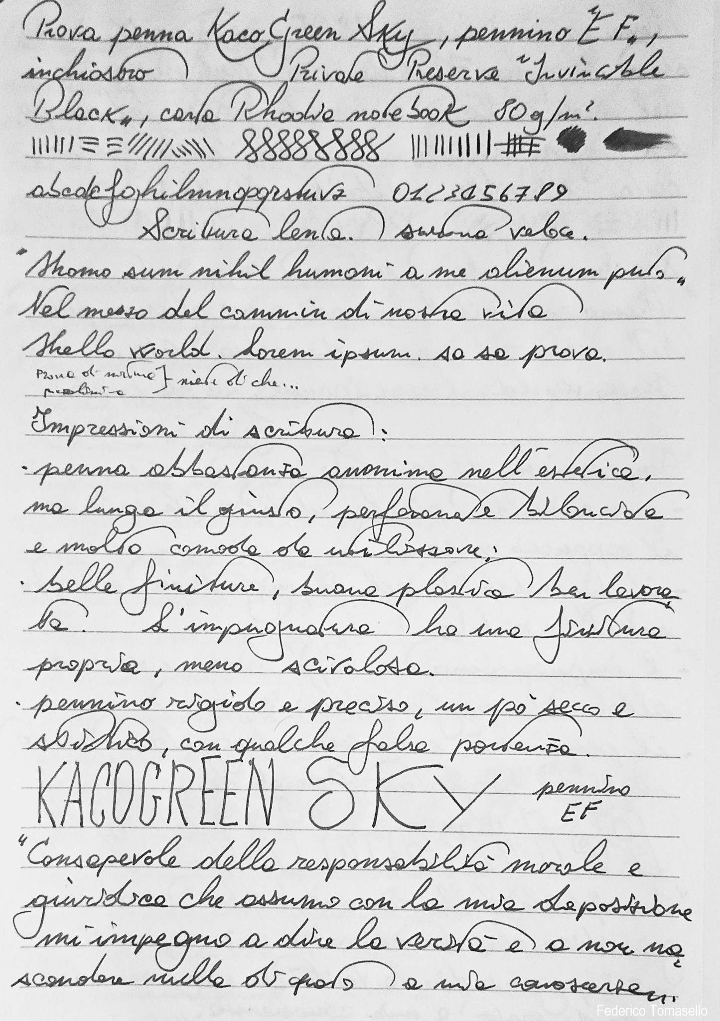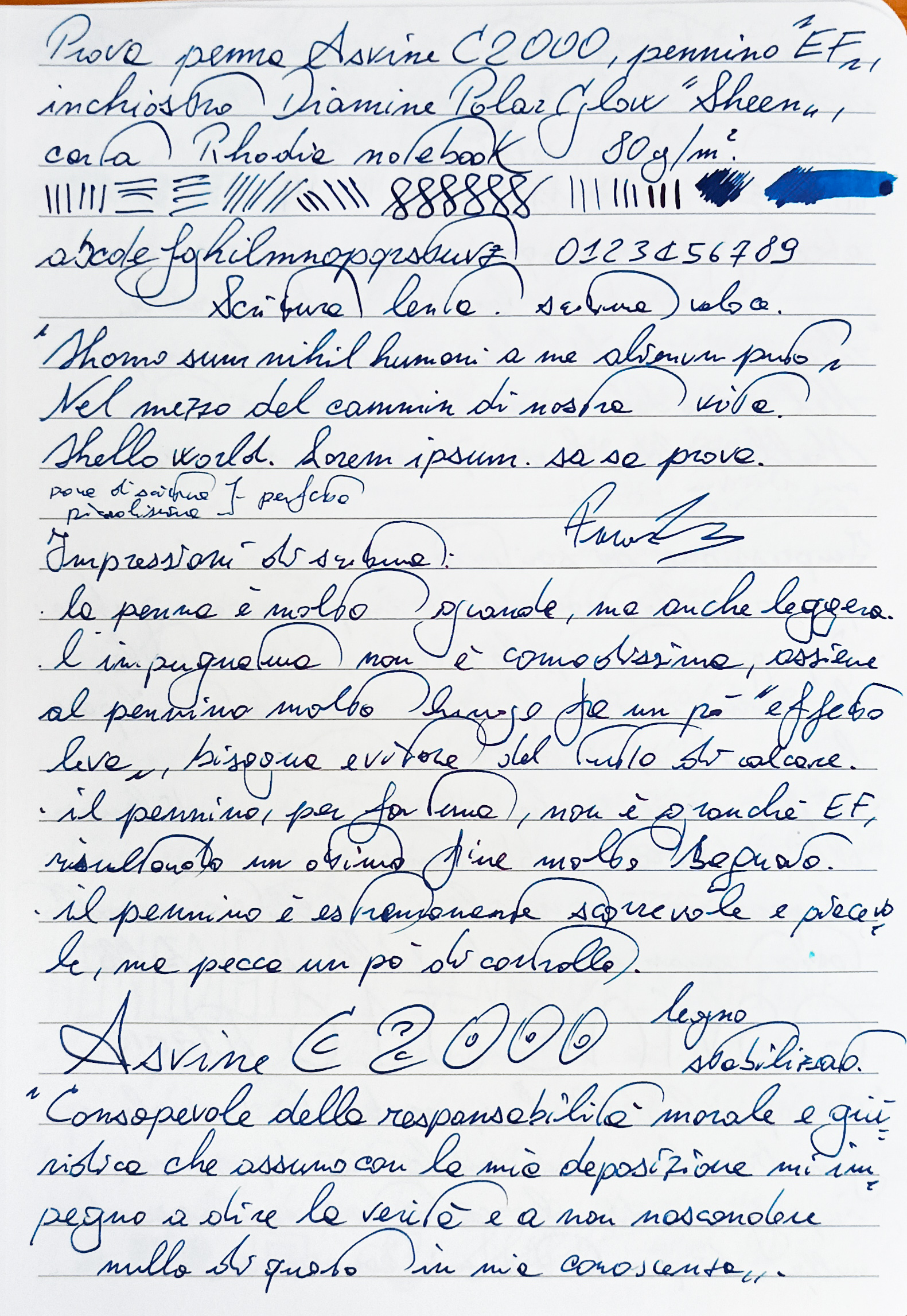 Il pennino è un EF sottile, ma anche abbastanza levigato e bagnato da non dare particolari attriti fastidiosi.