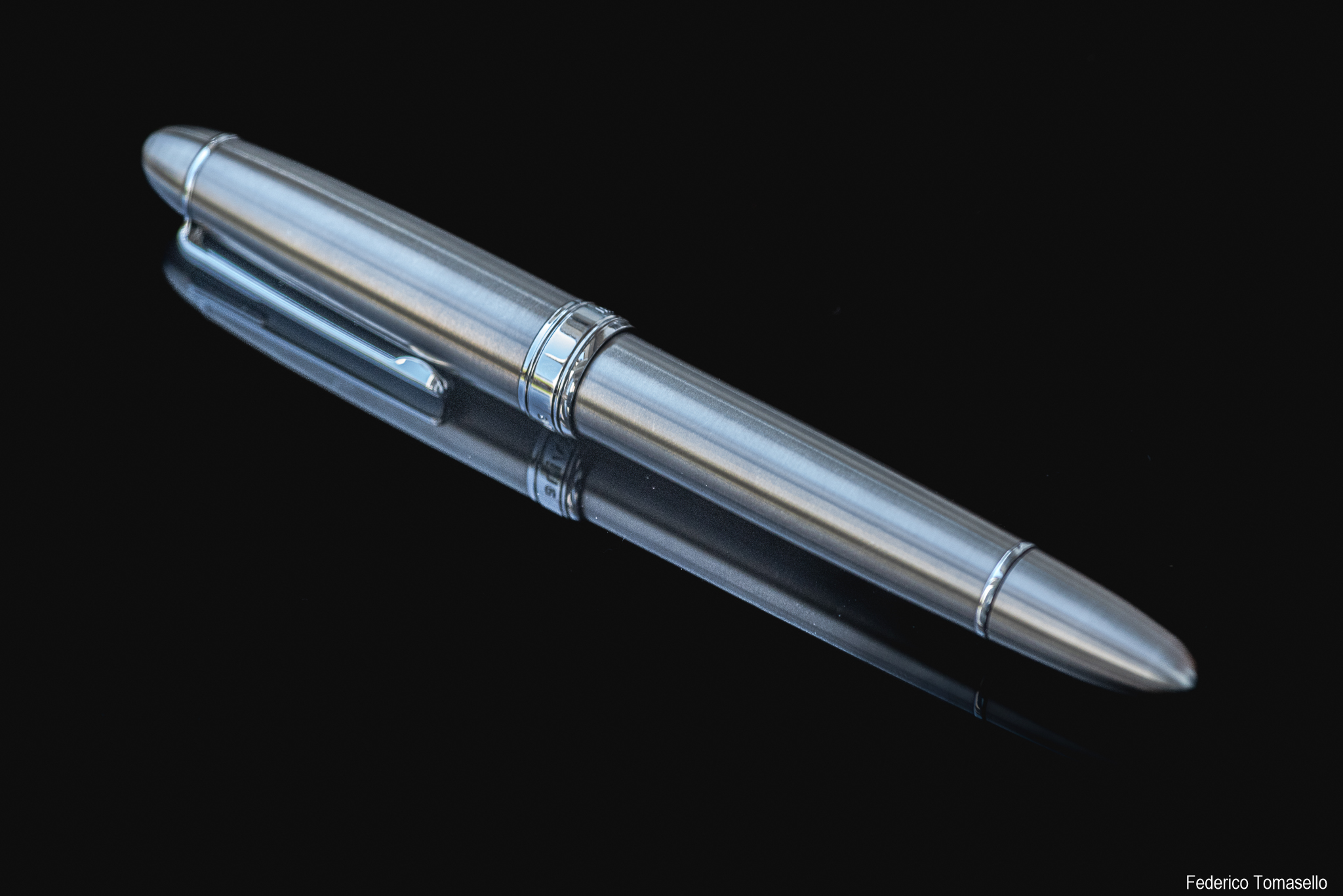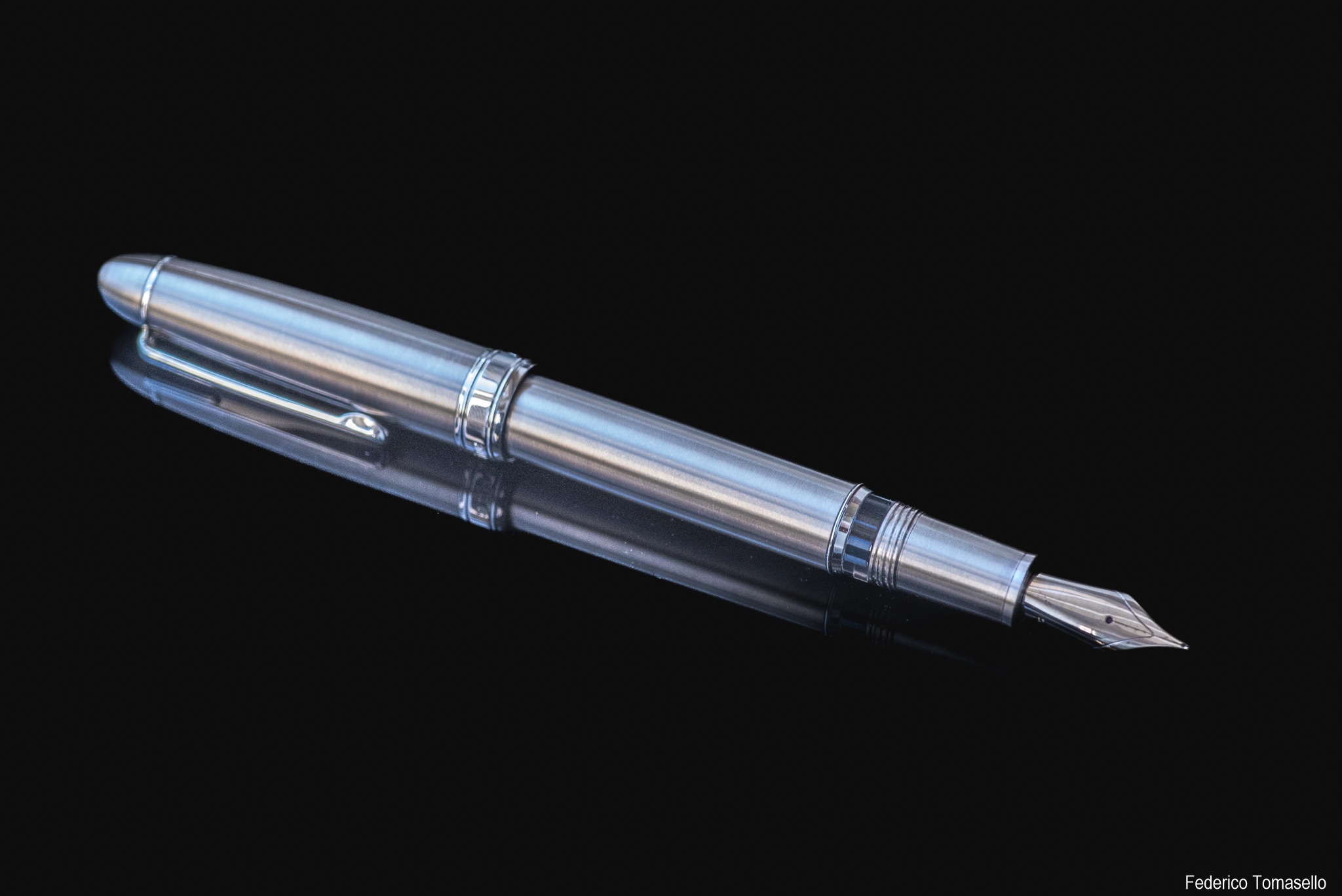 Un'altra penna che avevo intenzione di comprare e che alla fine ho preso usata dal tizio di cui sopra: le forme non mi piacciono per nulla, noiose e derivative; ma ammetto che il titanio (ammesso lo sia veramente) è intrigante, la finitura è ben fatta e la penna in generale è abbastanza grande e stabile da essere molto molto piacevole da tenere in mano.
