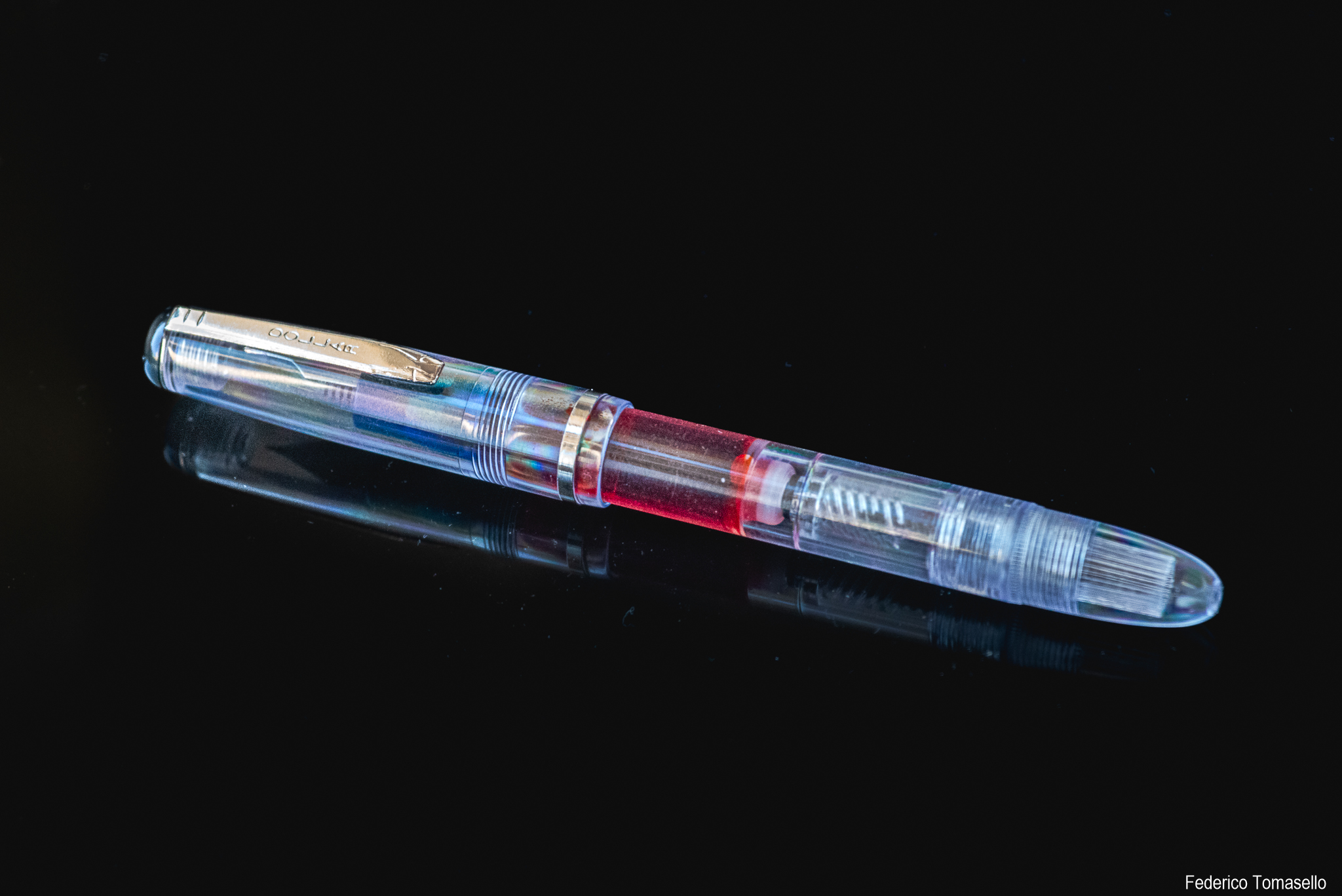 Della penna... pure. Non costa nulla, è carina, ha il converter annegato a mo' di pistone e scrive dignitosamente.