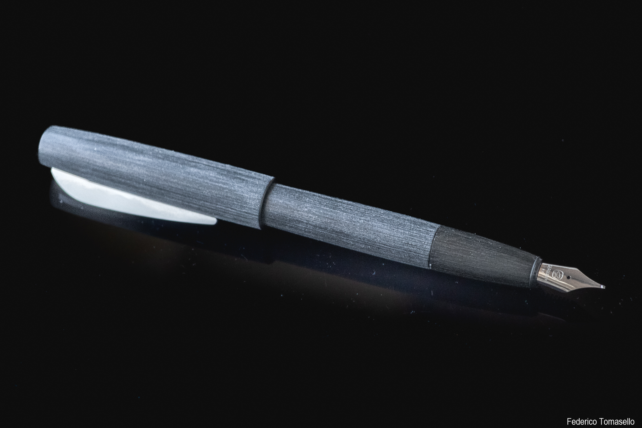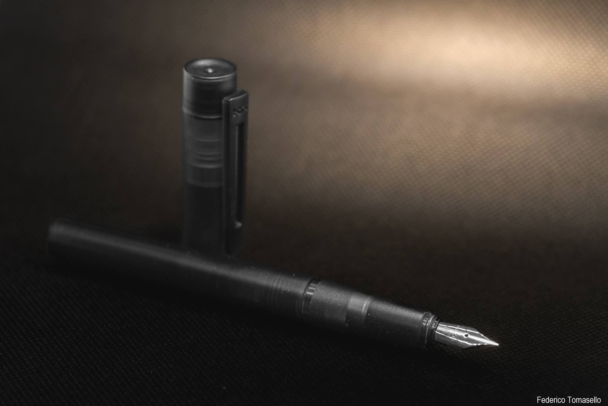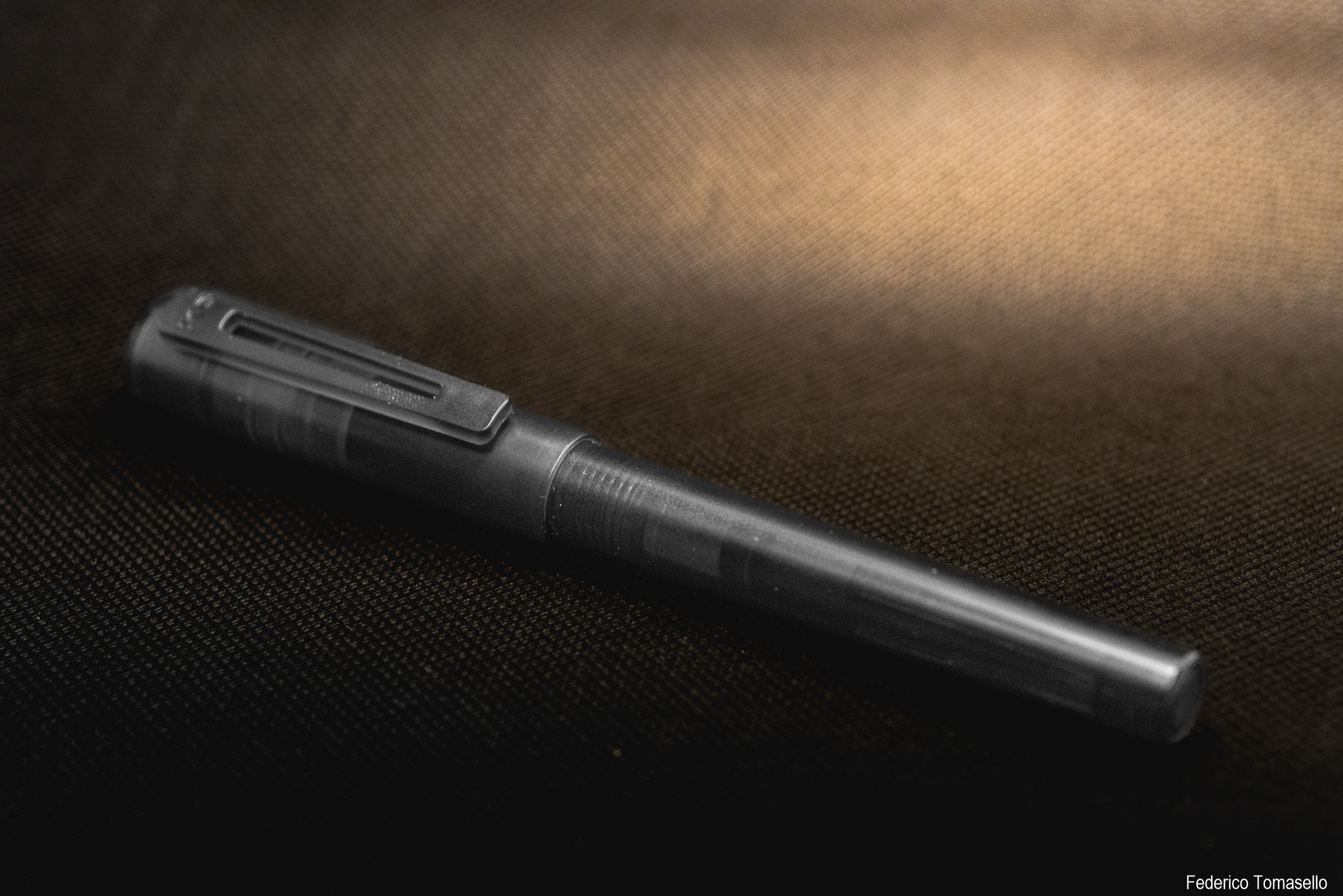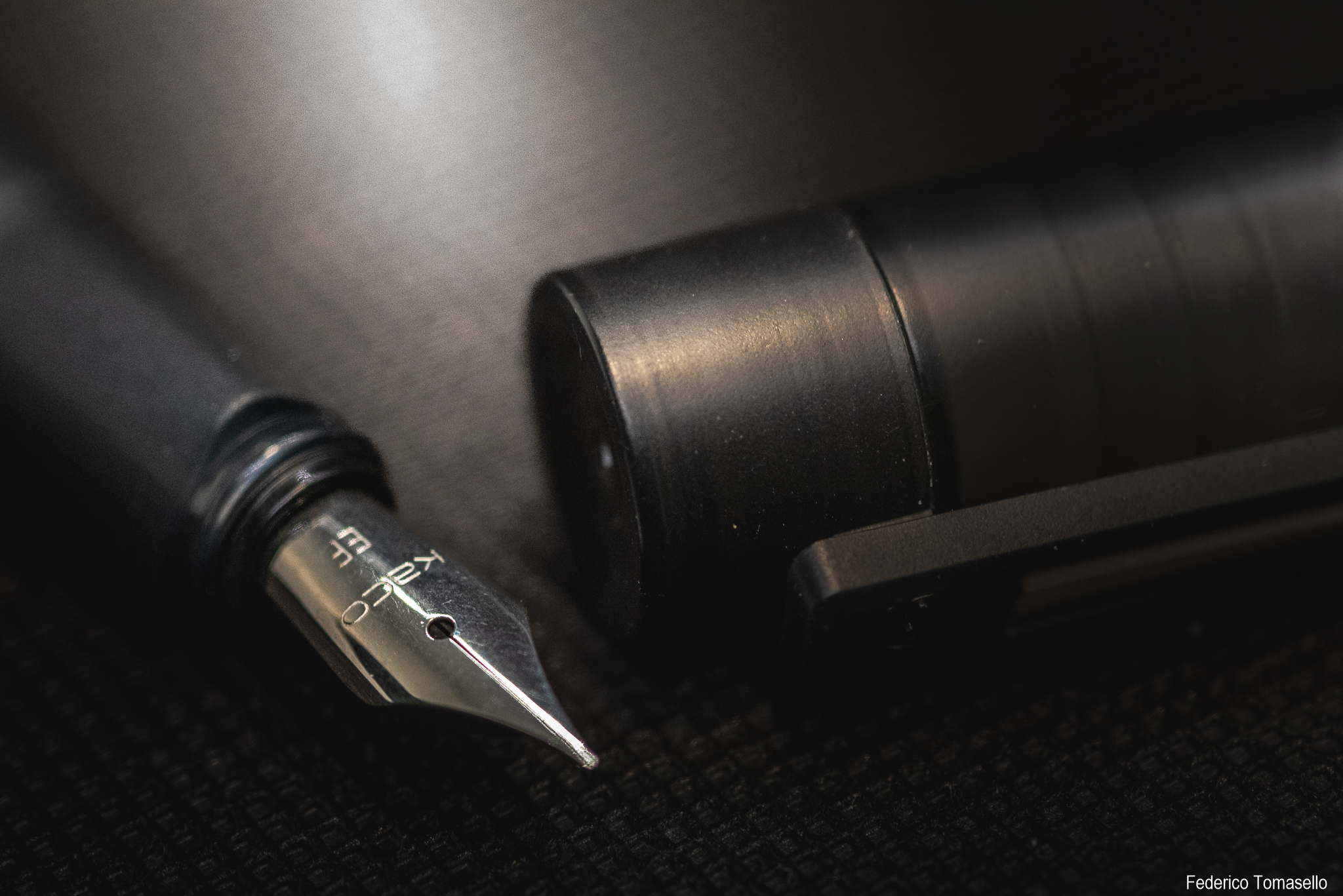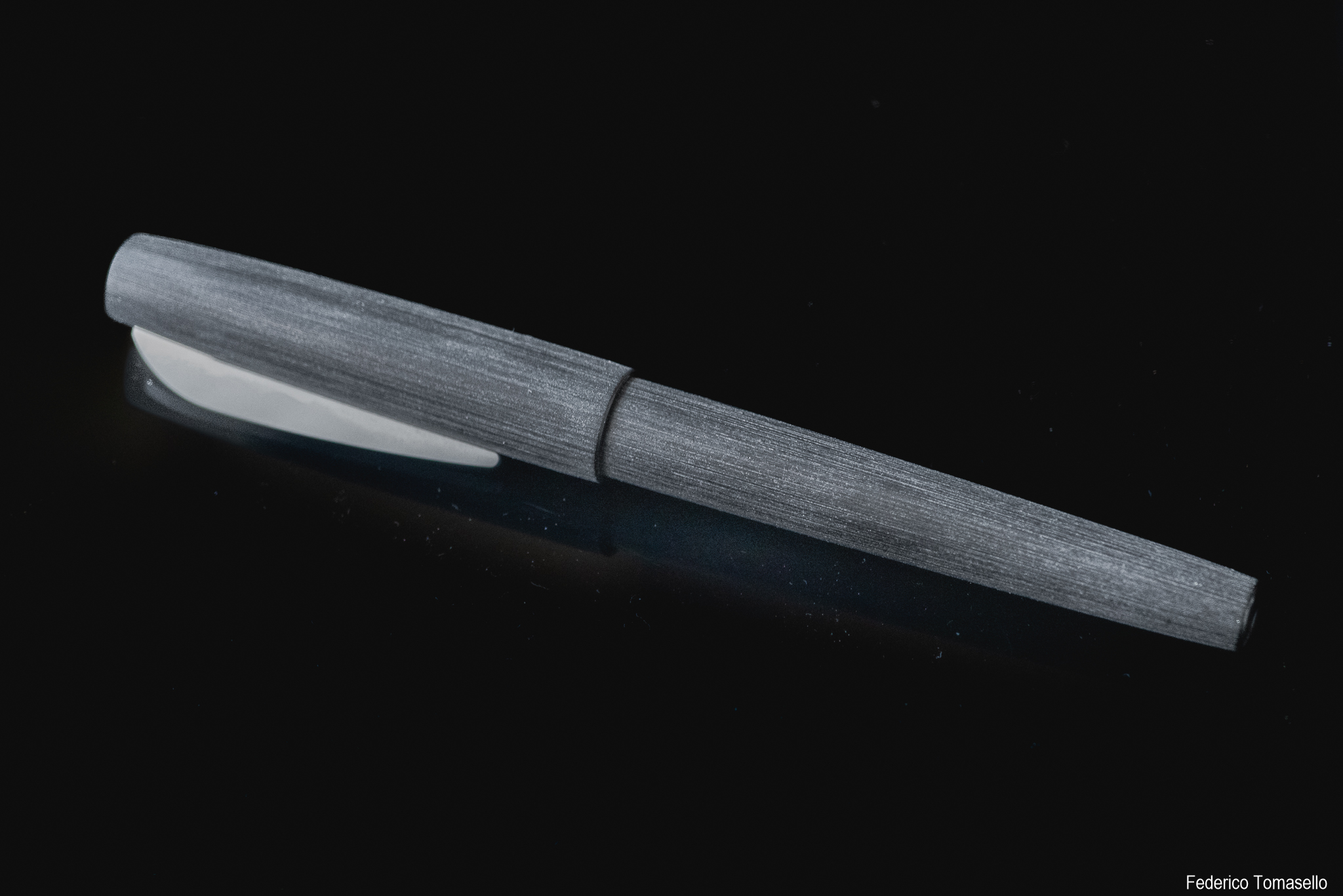 La penna è molto più semplice delle altre due, ma anche estremamente comoda: più grande dell'apparenza, è bilanciatissima e soprattutto comoda da afferrare, con una sezione di forma leggermente diversa dal fusto e con una finitura opaca piacevolissima al tatto.