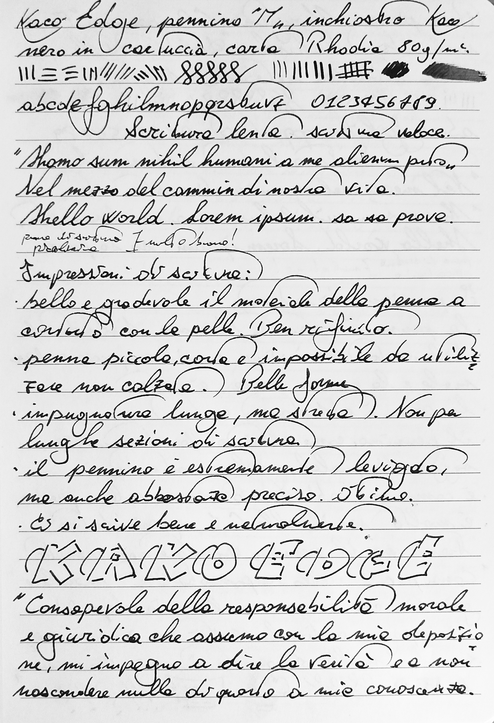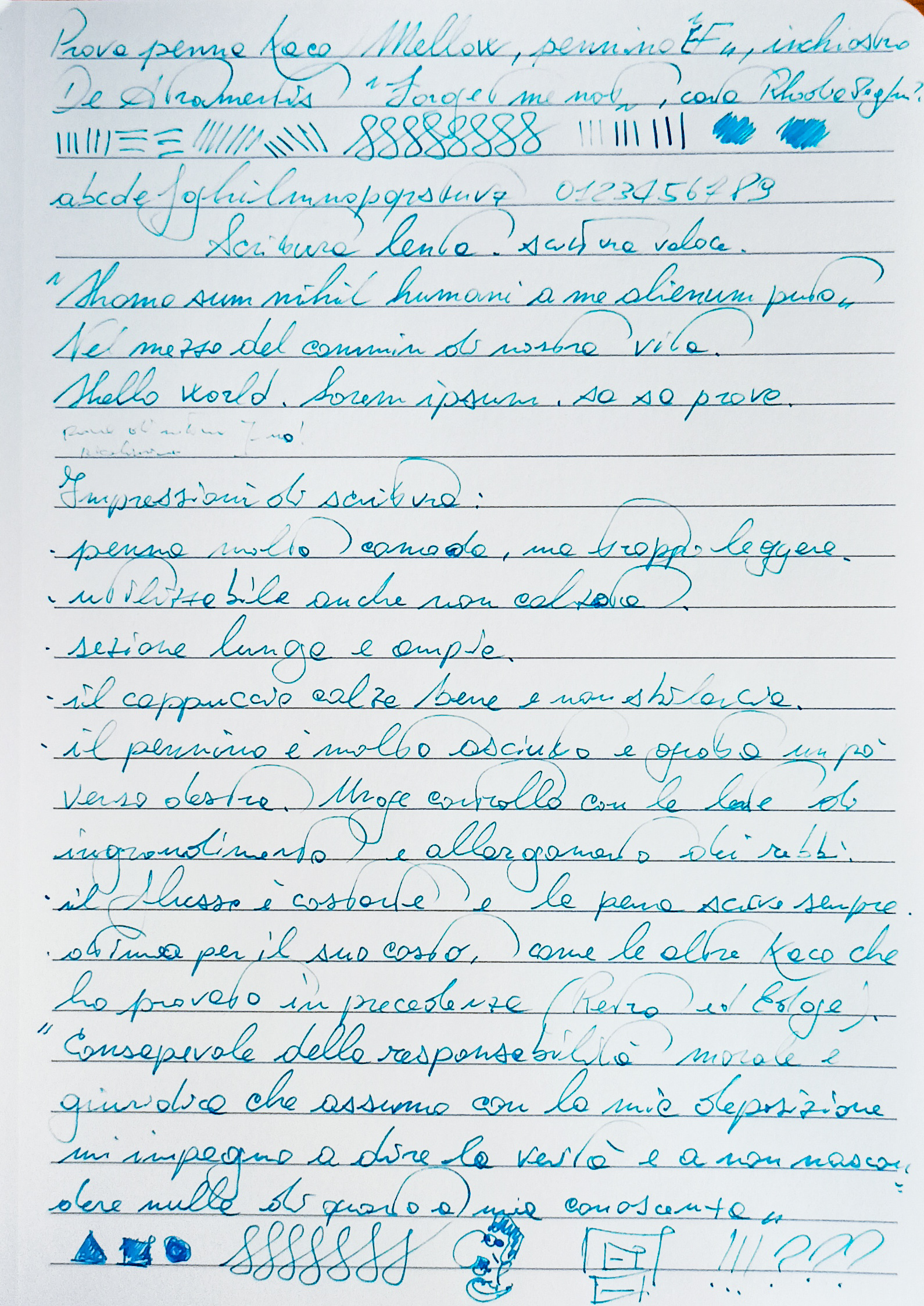 La penna mi è risultata strabiliante: a livello di scrittura è praticamente senza attrito e con un tratto pieno, scorrevole e bagnato.