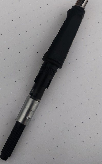 Dopo aver constatato che è facile pulire chou kuro dagli alimentatori usando acqua di rubinetto e spazzolino, ho inserito chou kuro nella lamy, che ha alimentatore smontabile facile da pulire, ho usato un convertitore hongdian che è disassemblabile, risultato positivo.