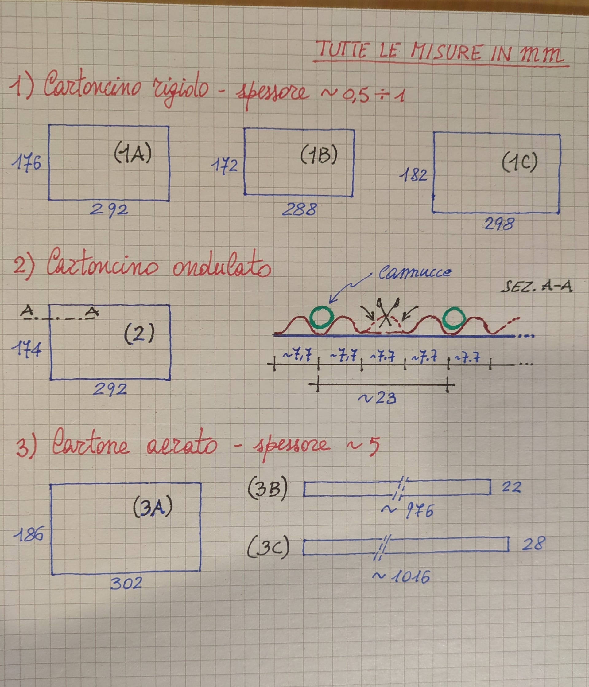 - cartoncino rigido, spessore ~0,5÷1mm